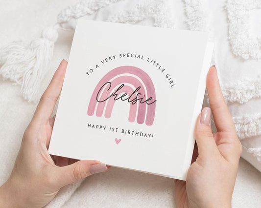 Celebrate a very special little girl's first birthday with this personalised rainbow card. Featuring a...