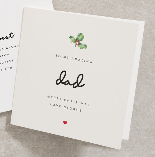 Personalised Amazing Dad Christmas Card From Him or Her, Merry Christmas Card to Dad From Son or Daughter, Simple Xmas Card For Him CC380