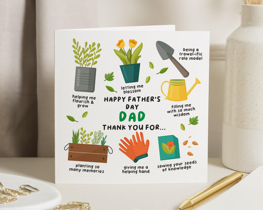 Show Dad how much he means with this cute gardening themed Father's Day card, featuring...