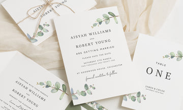 Our Aisyah wedding stationery collection with it's eucalyptus accents is the perfect match to any floral theme! A calligraphy font accompanies the greenery well to give a modern feel! The Aisyah collection ranges from save the dates to on the day stationery such as order of services, place cards and much much more!