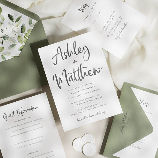 Elevate your wedding invites with our Ashley designs, seamlessly blending classic sophistication with a modern,...