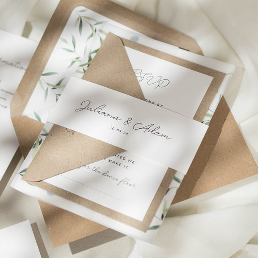 Beautiful Wedding Invite With Green Bellyband 'Juliana'