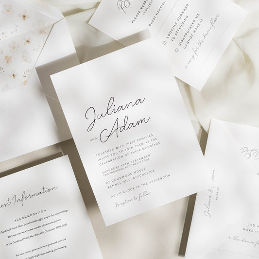 Savour the moment with your wedding menus! With contemporary fonts our Juliana design will provide...