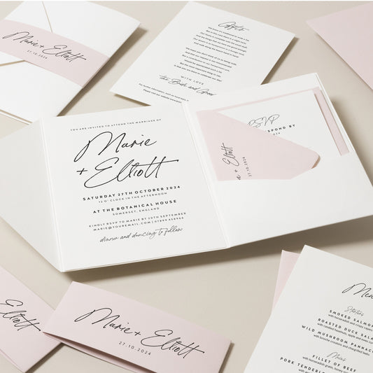 Nude Pocketfold Wedding Invitation With Elegant Design 'Marie'