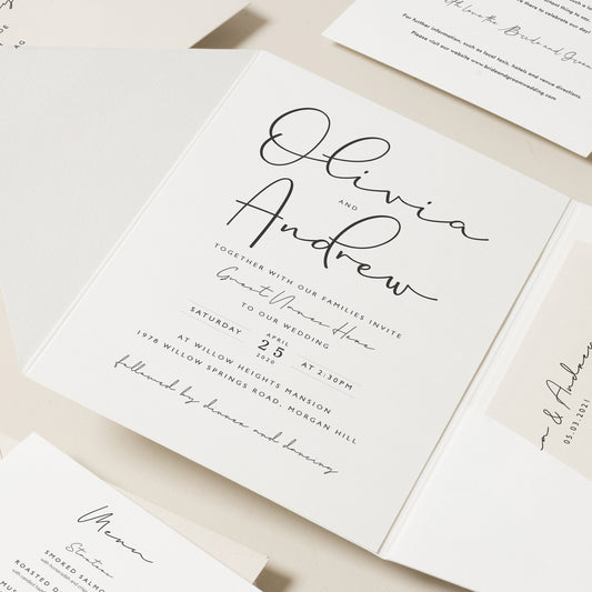Calligraphy Pocketfold Wedding Invitation Suite 'Olivia'