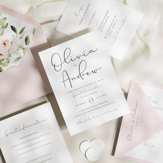 Blush Pink Wedding Invitation with Envelope Liners 'Olivia'