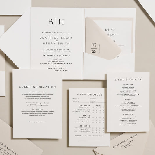 Modern Pocketfold Wedding Invite Set 'Beatrice'
