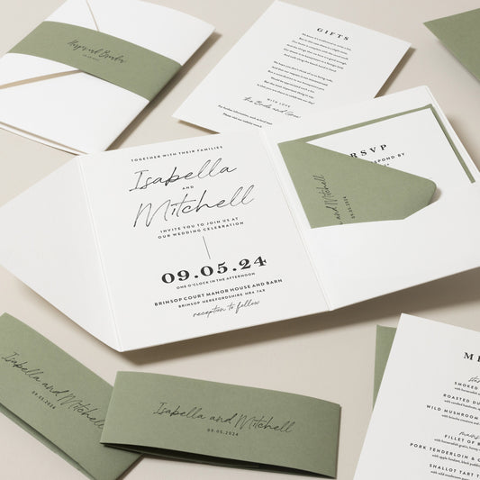Beautiful Wedding Invitation With Green Bellyband 'Isabella'