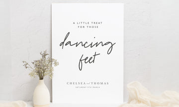 Get ready to kick off your dancing shoes! Our custom wedding signs are designed to help your guests know exactly when it's time to let loose and boogie the night away. With a beautiful dancing feet sign, you can let your guests know that you've got the perfect spot for them to get their groove on.