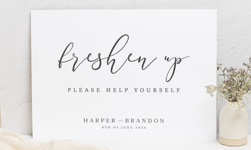 Keep your guests feeling fresh and fabulous all day long! Our freshen up wedding signs are designed to let your guests know that you've got everything they need to feel refreshed! From a spritz of perfume to a full-on revamp, our signs are the perfect way to let your guests know that you've got their back (and their face, and their hair...).