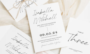 Our Isabella collection encompasses both fun and style, with calligraphy alongside a bold and modern font! With any theme for your big day the Isabella wedding stationery will be the perfect accompaniment! Be it with florals add a simple table number, or a place card with your wedding favours the whole collection is totally gorgeous!