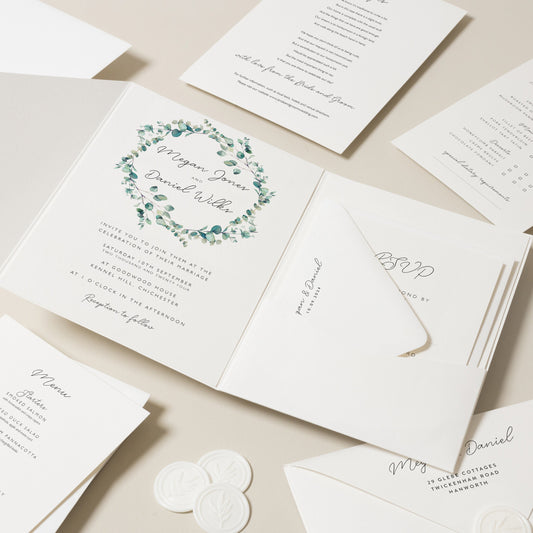 Floral Wreath Pocketfold Wedding Invitations 'Megan'