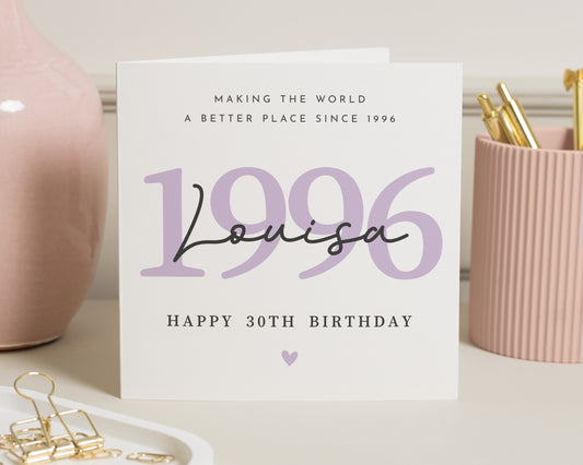 Celebrate a special 30th birthday with this personalised card featuring the year 1996 and custom...