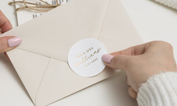 Add a touch of elegance to your wedding stationery with this gold foil personalised sticker...