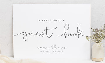 Create a beautiful and meaningful keepsake with our custom wedding guest book signs! Our signs are designed to help your guests find the perfect spot to write their messages, making it easy for you to treasure memories of your special day. With a range of designs to choose from, our signs will perfectly complement your wedding décor.