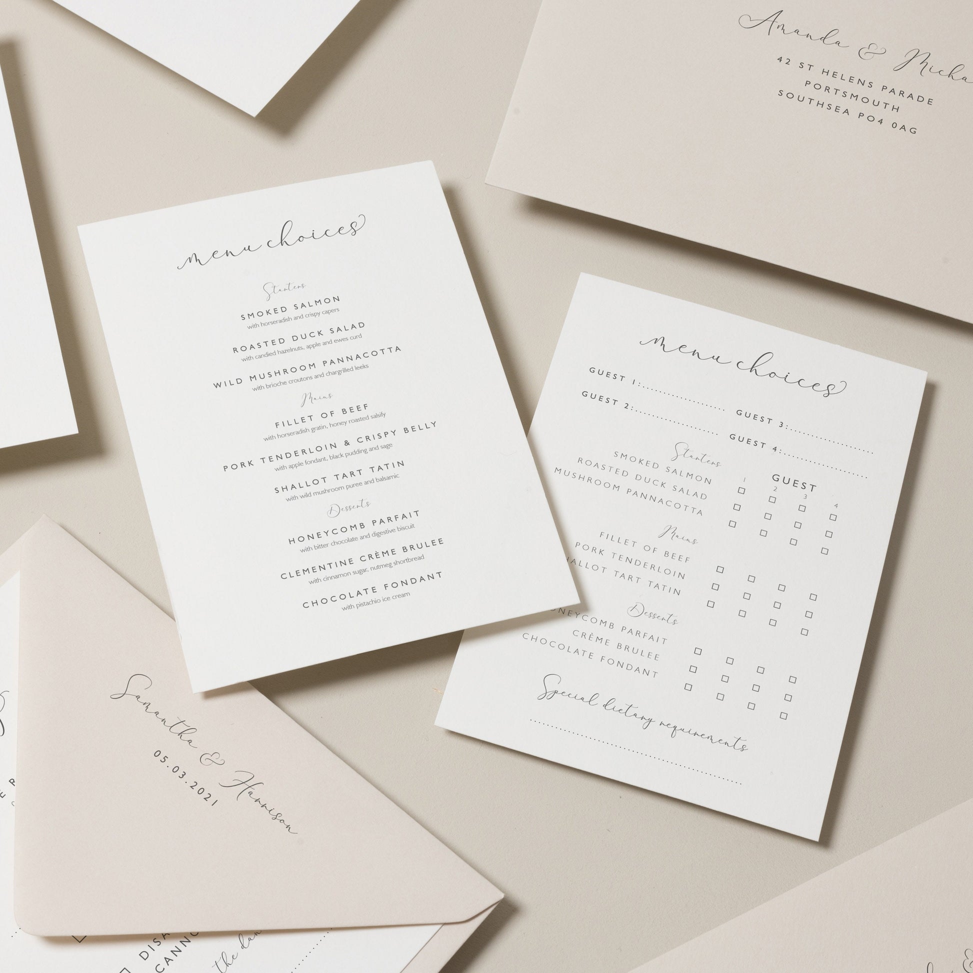 INFO CARDS: Useful for additional info such as taxi numbers, hotels, gift lists, poem's and more.
