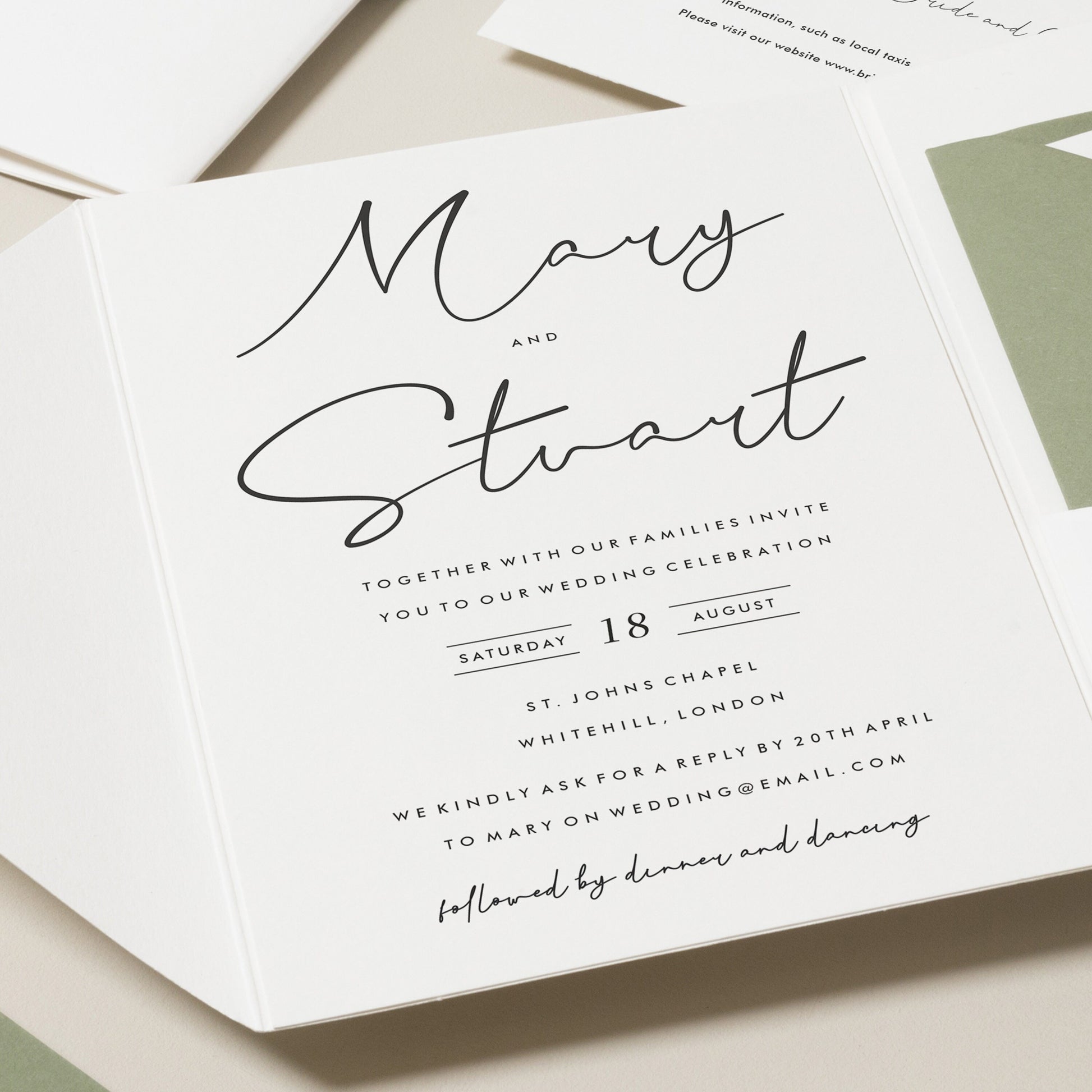 Ready to make a statement? Let's create your dream wedding invite! Our unique quote link for this design is quote.link/mary-pocketfold, all you need to do is pop it into your URL and it will offer you all the options to add to make it personal.