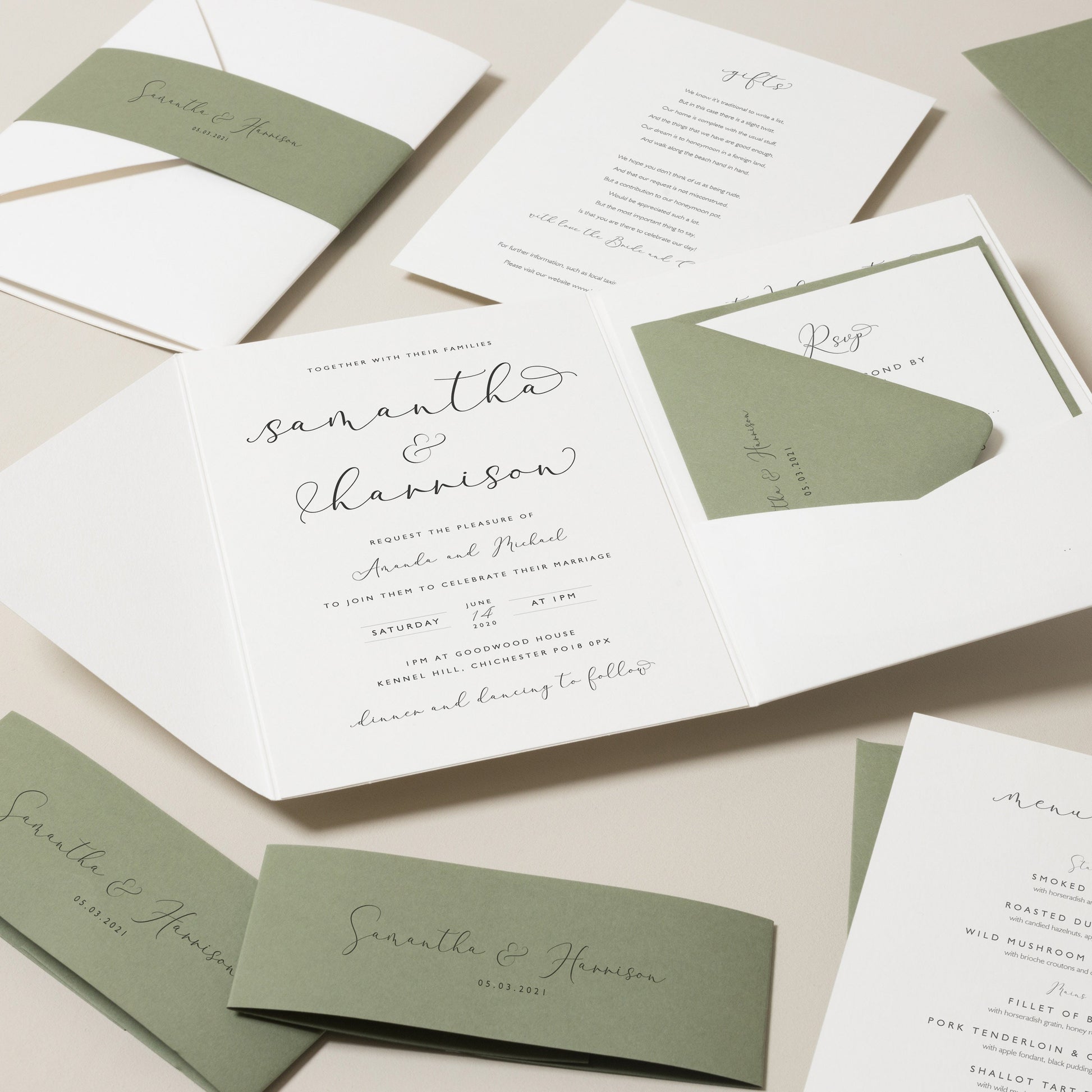 Beautiful Wedding Invitation With Green Bellyband 'Samantha'