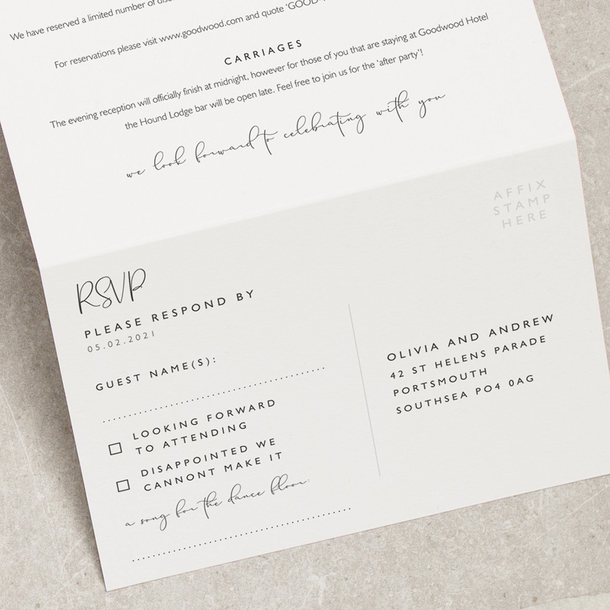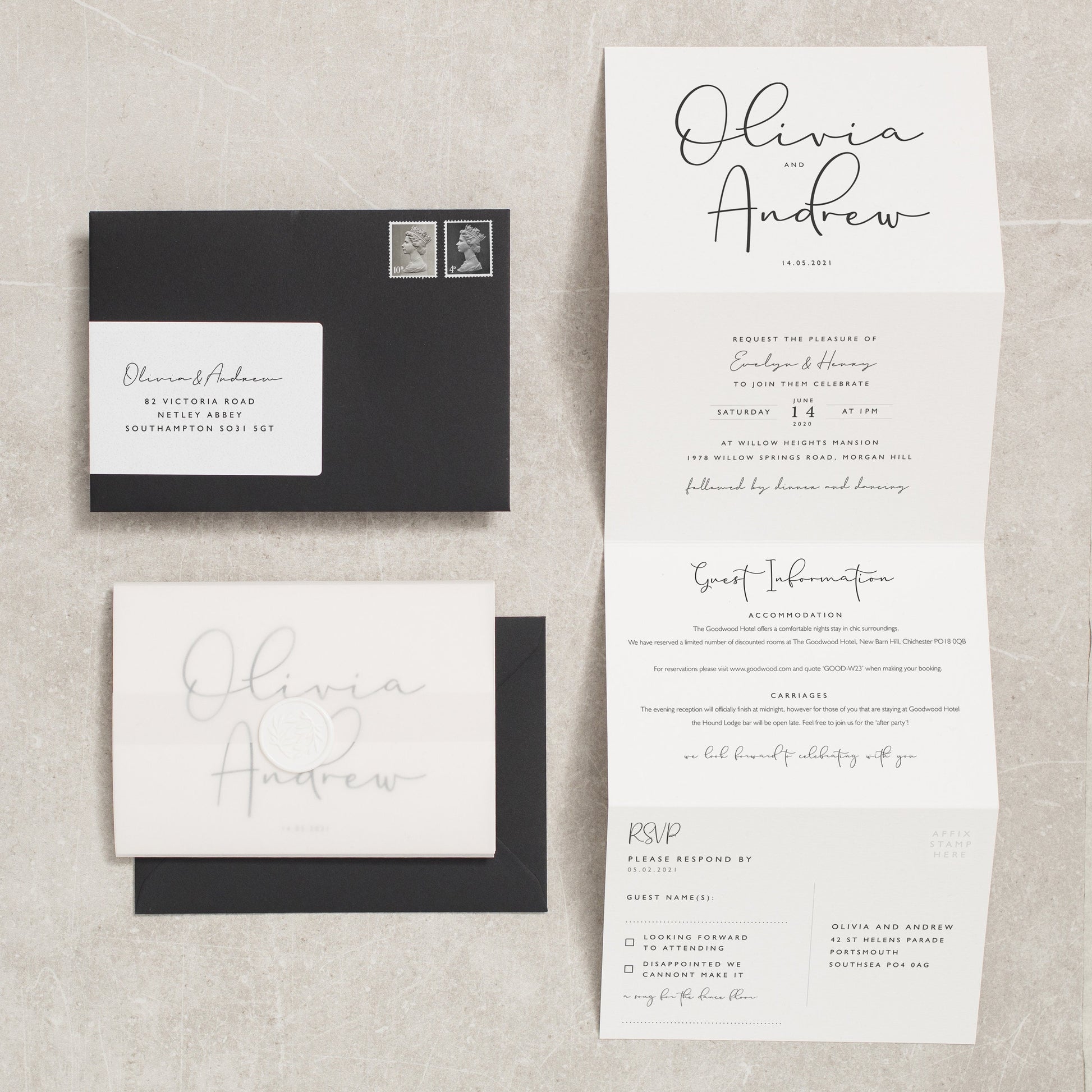 Black and White Concertina Wedding Invitation Classic 'Olivia'