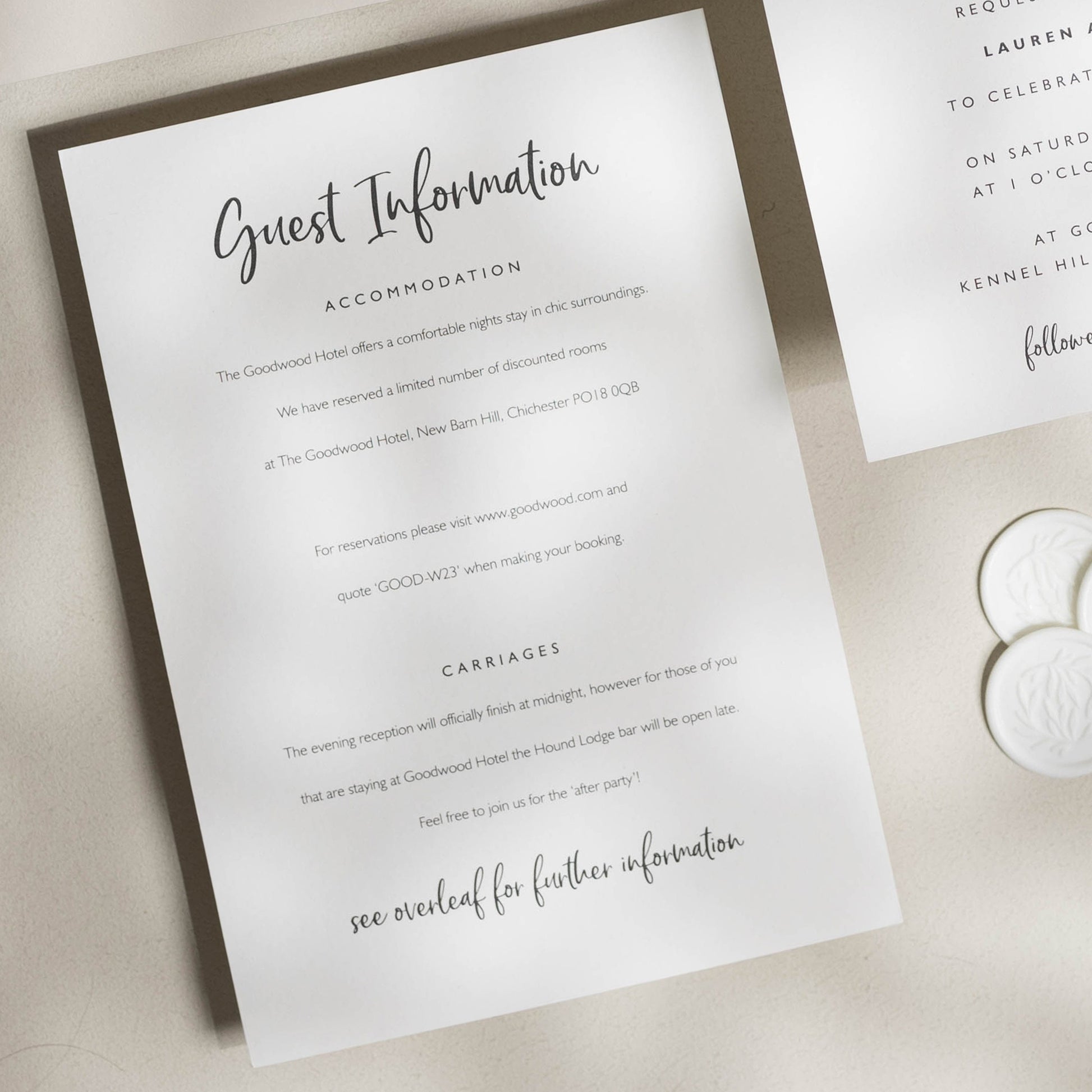 INFO CARDS: Useful for additional info such as taxi numbers, hotels, gift lists, poem's and more.