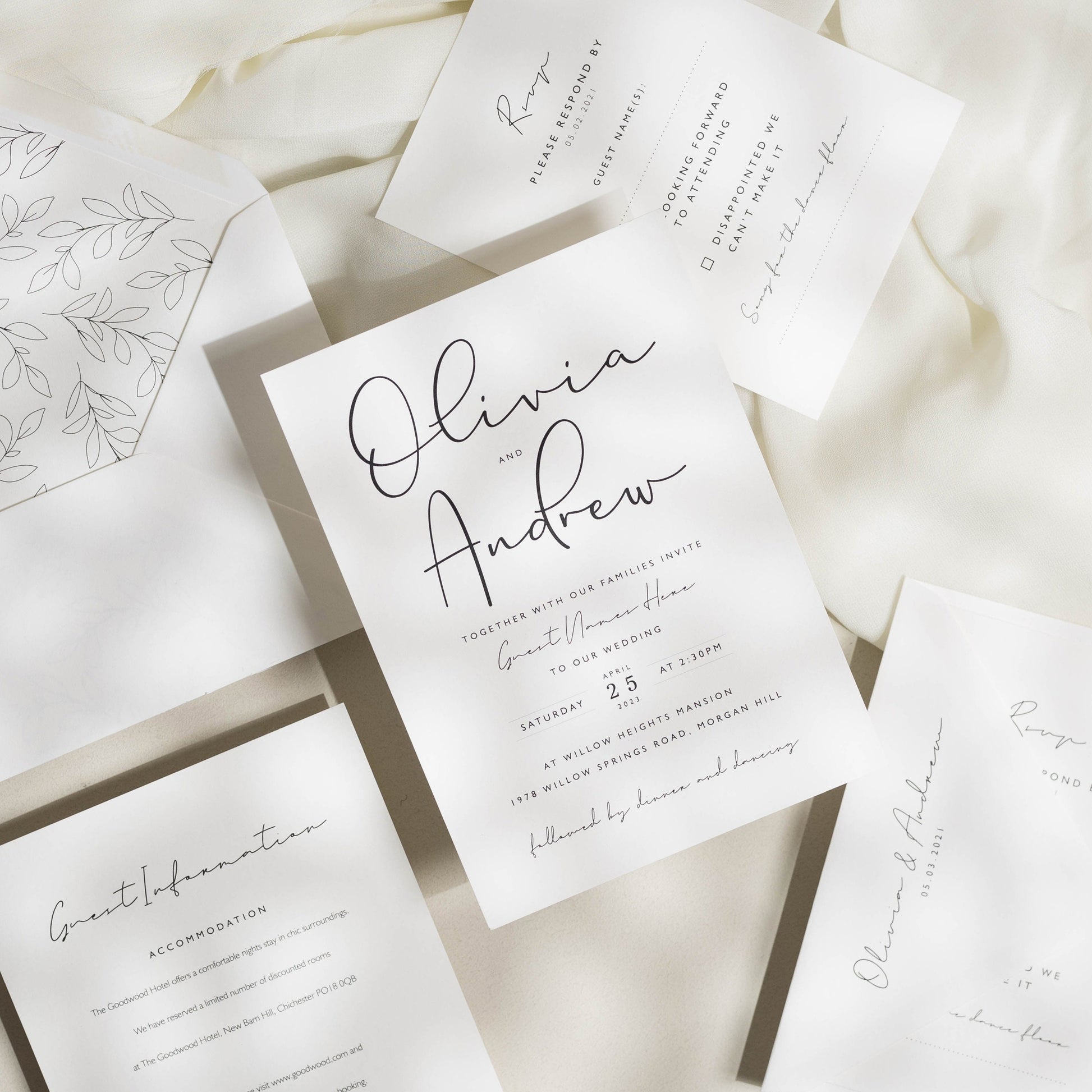 Black And White Wedding Invitation with Envelope Liners 'Olivia'