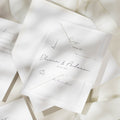 VELLUM JACKETS: Our translucent vellum jackets wrap around your invitations to add interest, texture and intrigue.
