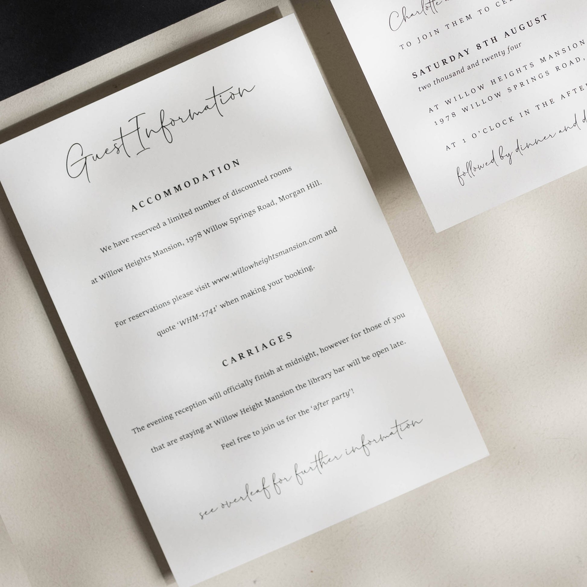 INFO CARDS: Useful for additional info such as taxi numbers, hotels, gift lists, poem's and more.