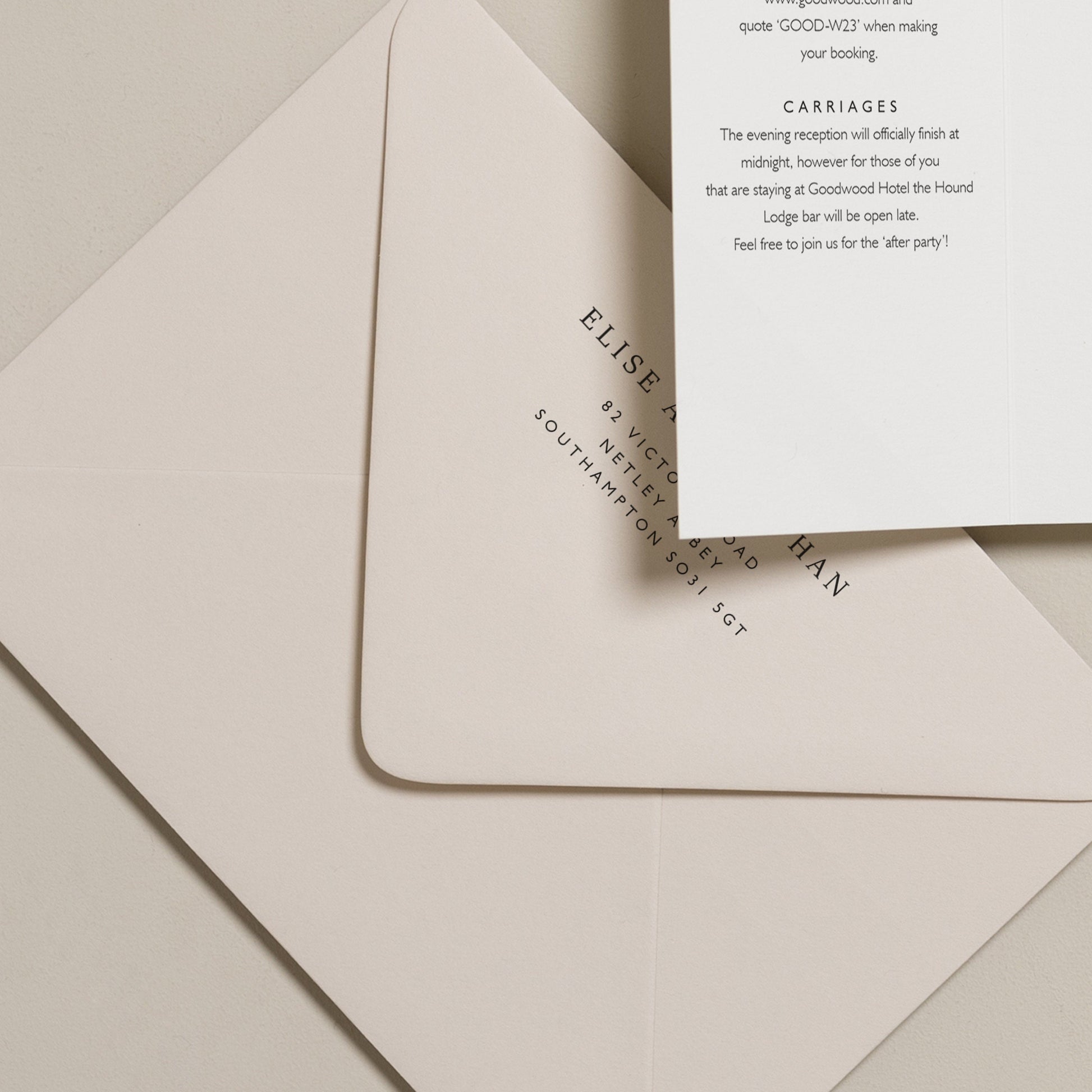 ENVELOPE ADDRESSING: Print your guest addresses on each envelope or include your return address on the reverse.