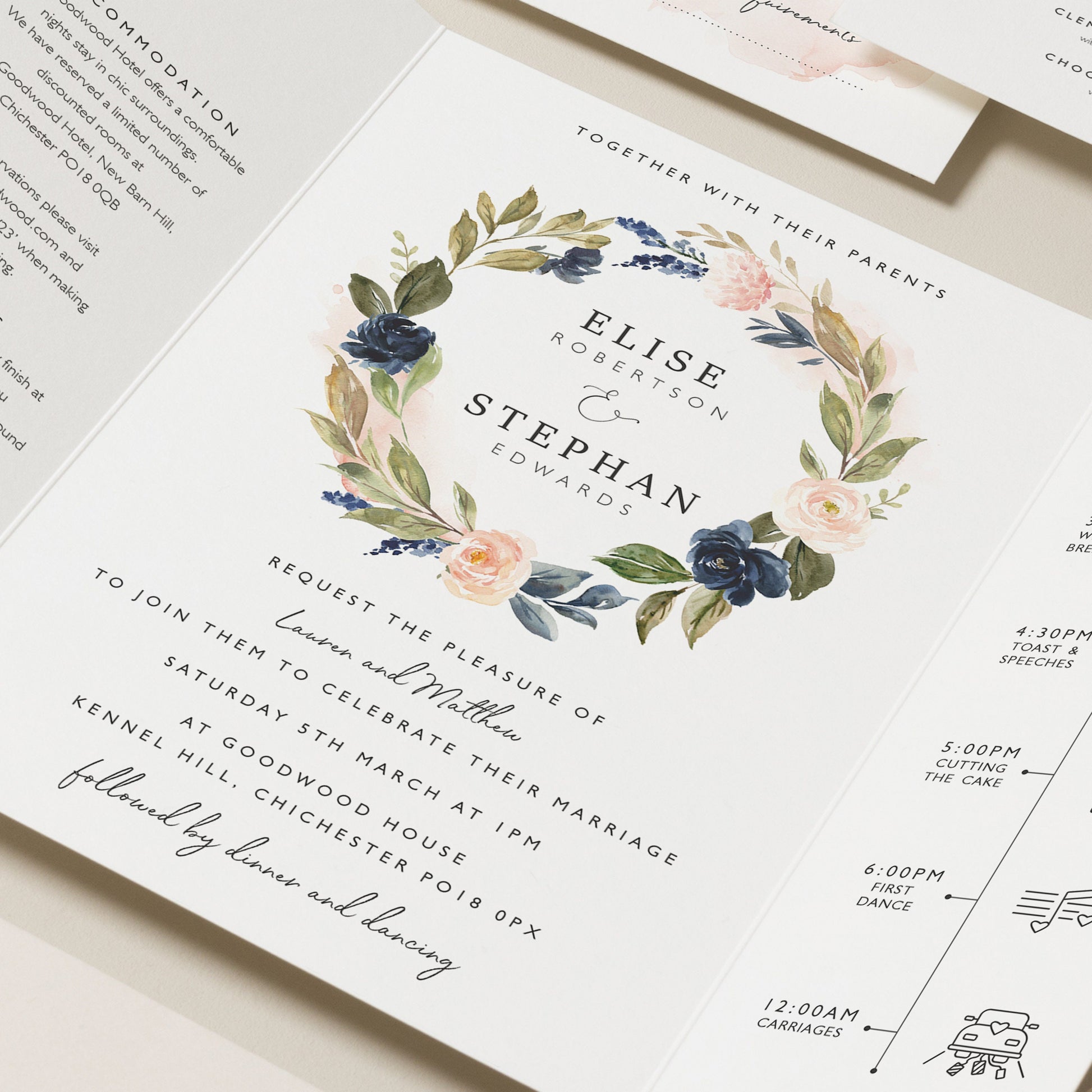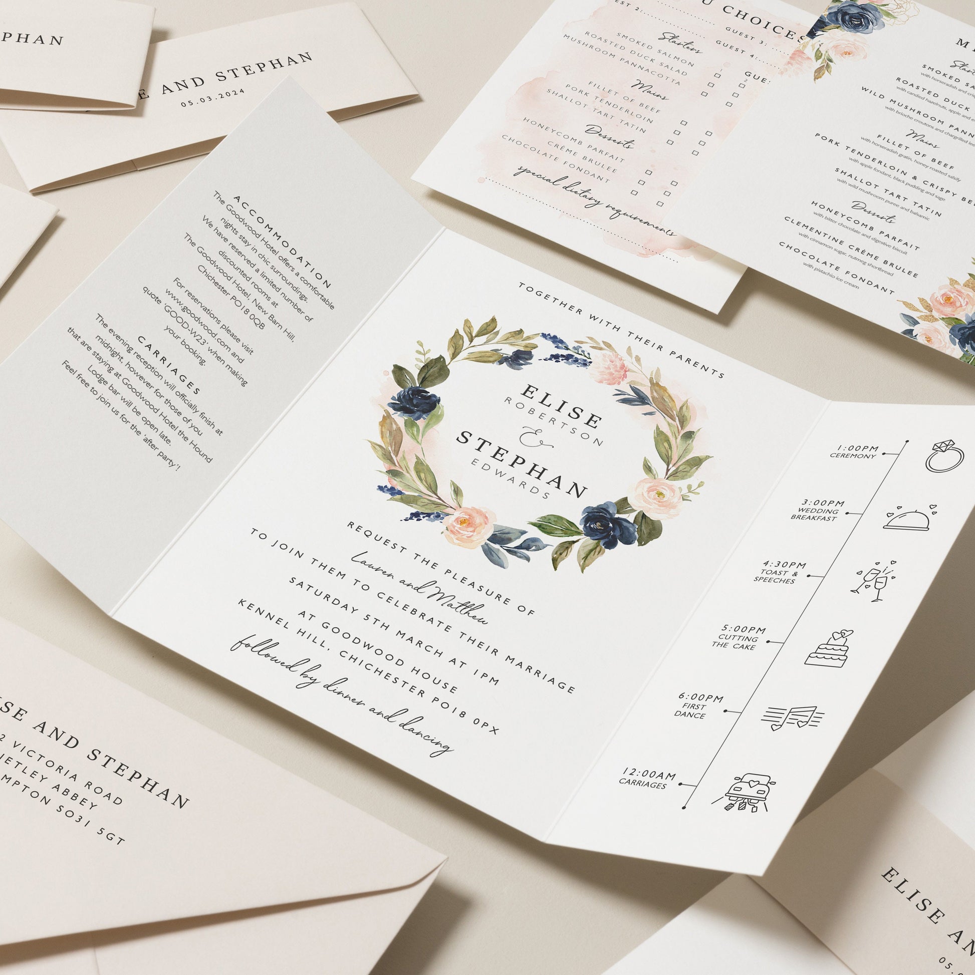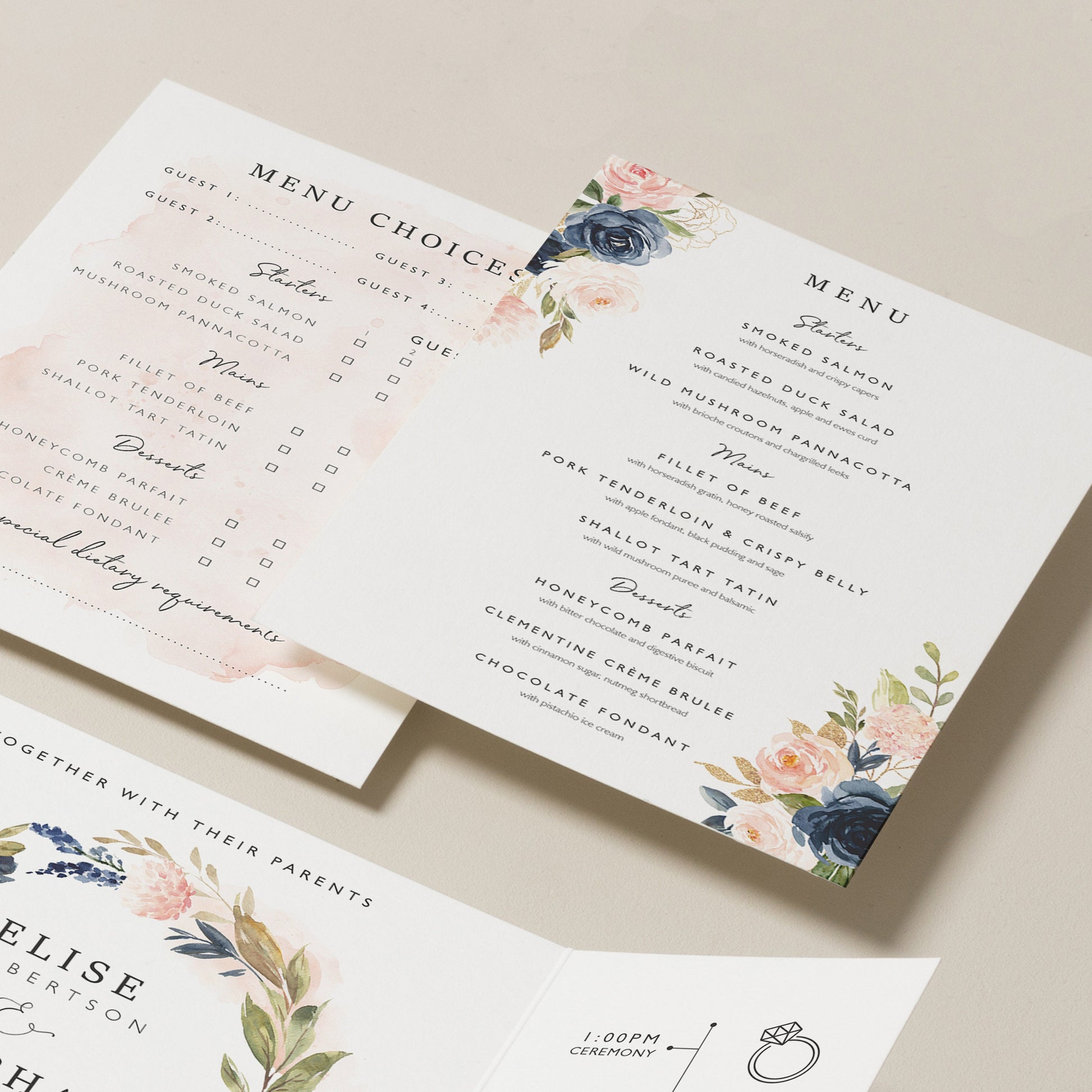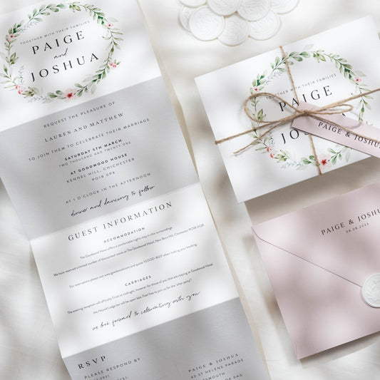 Blush Pink Floral Gatefold Wedding Invitations 'Elise'