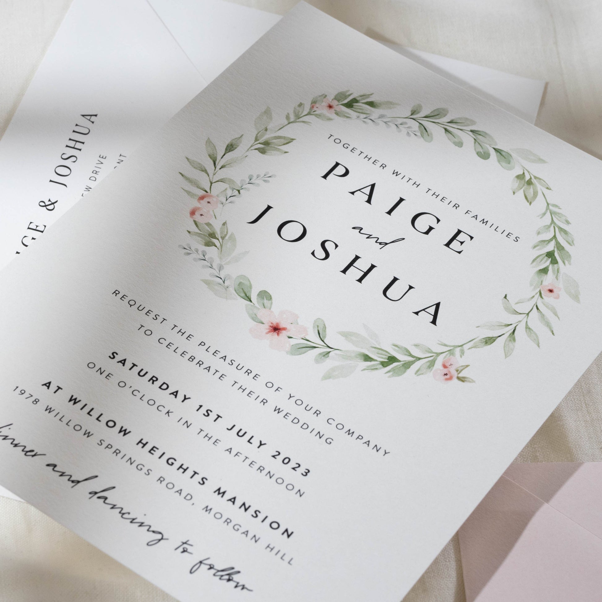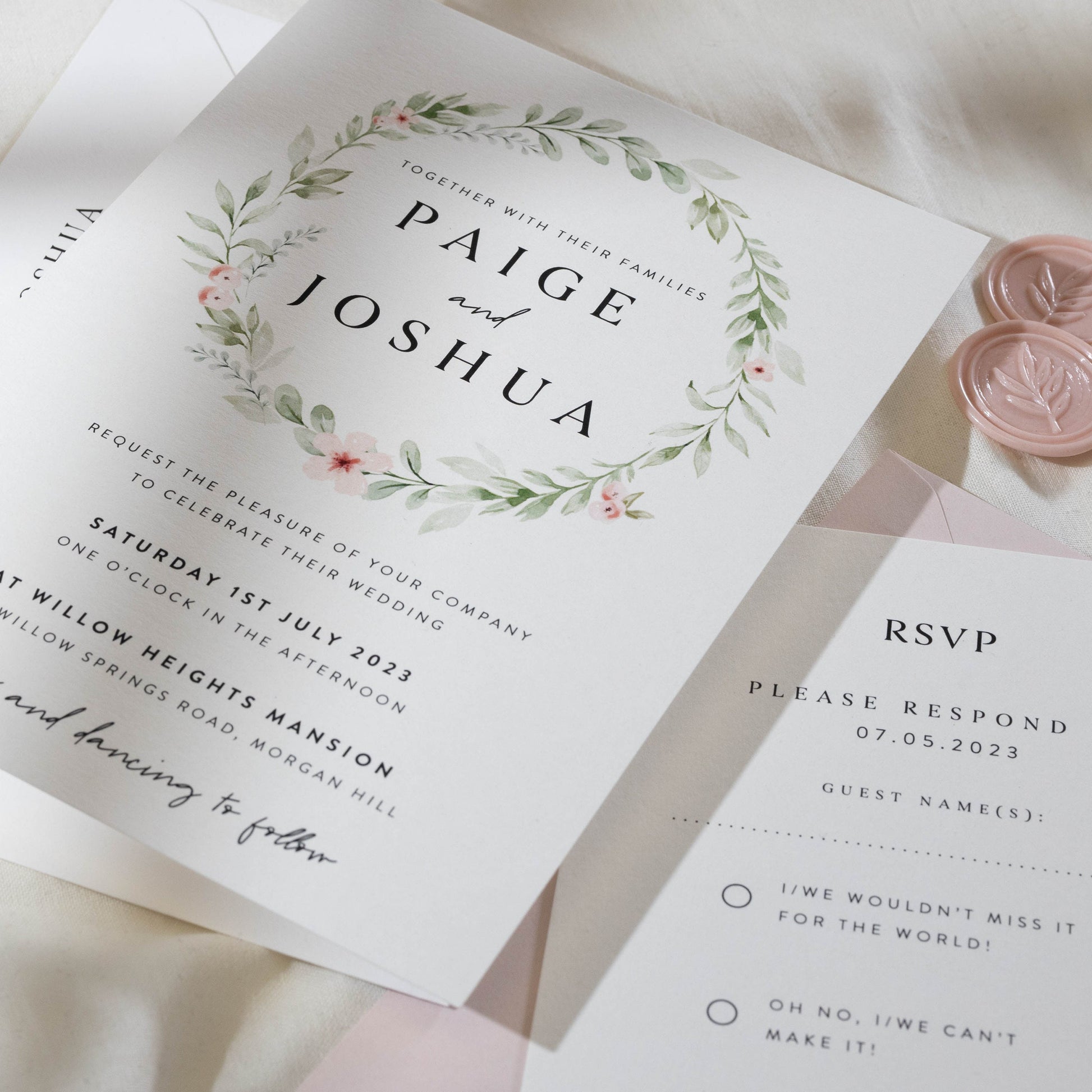 Blush Pink Floral Wedding Invitation Set 'Paige'