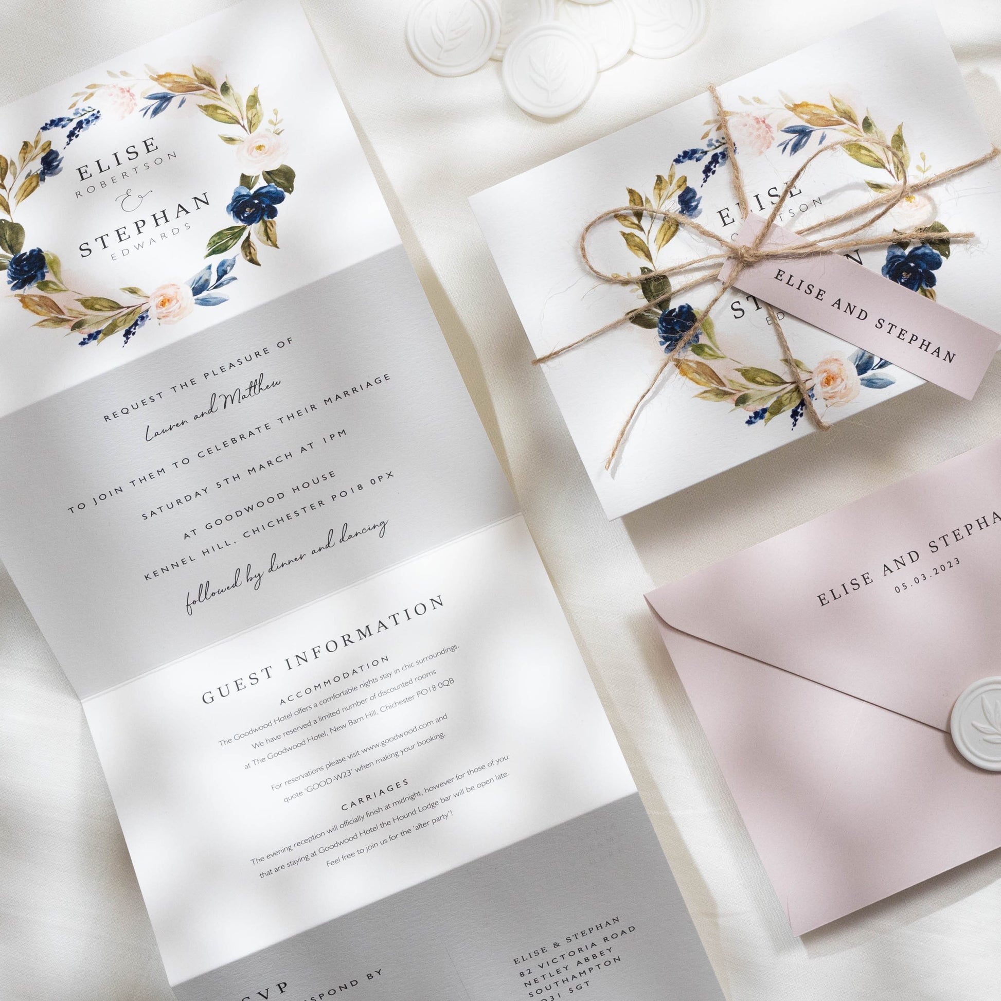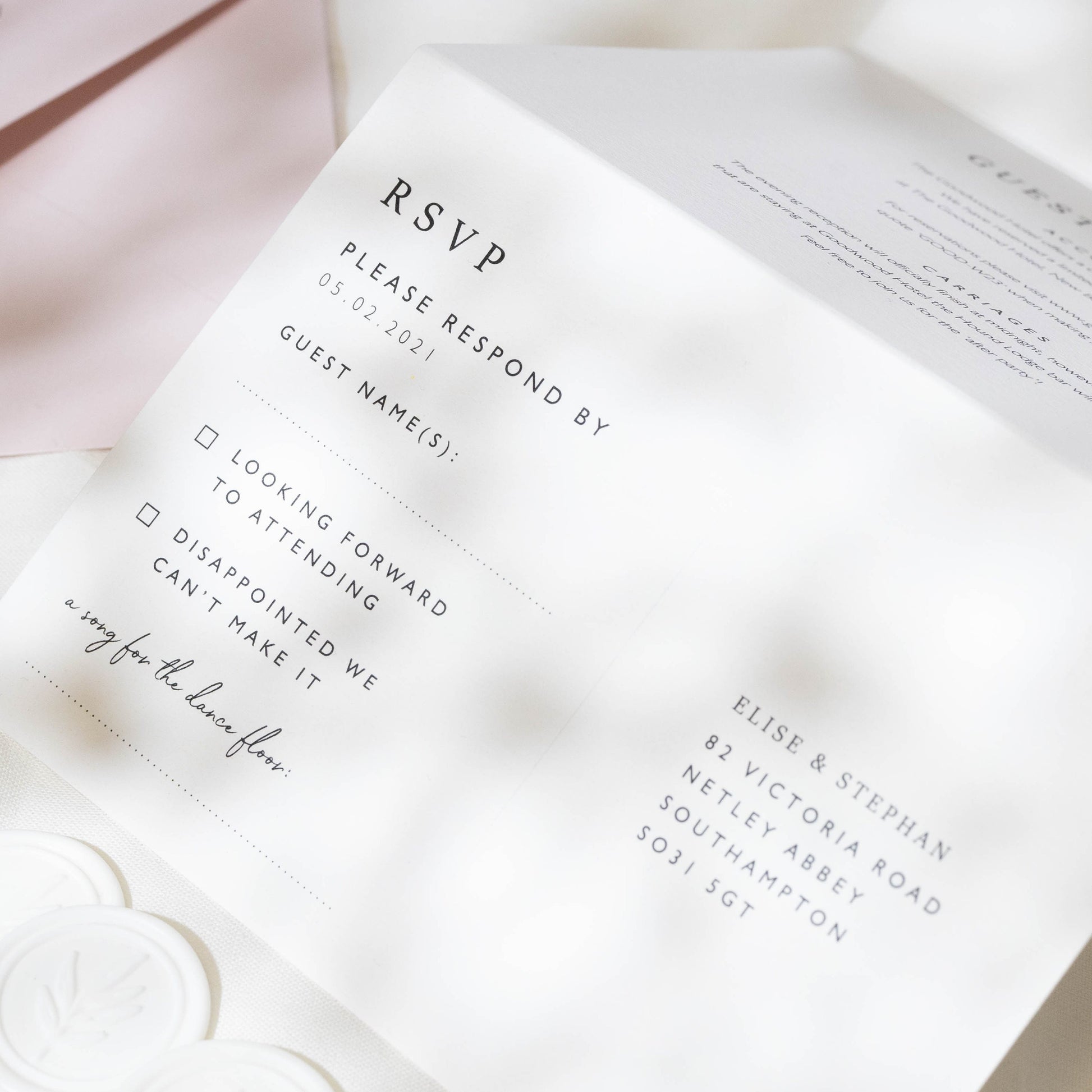 Blush Wedding Invitation Concertina Set with Envelopes 'Elise'