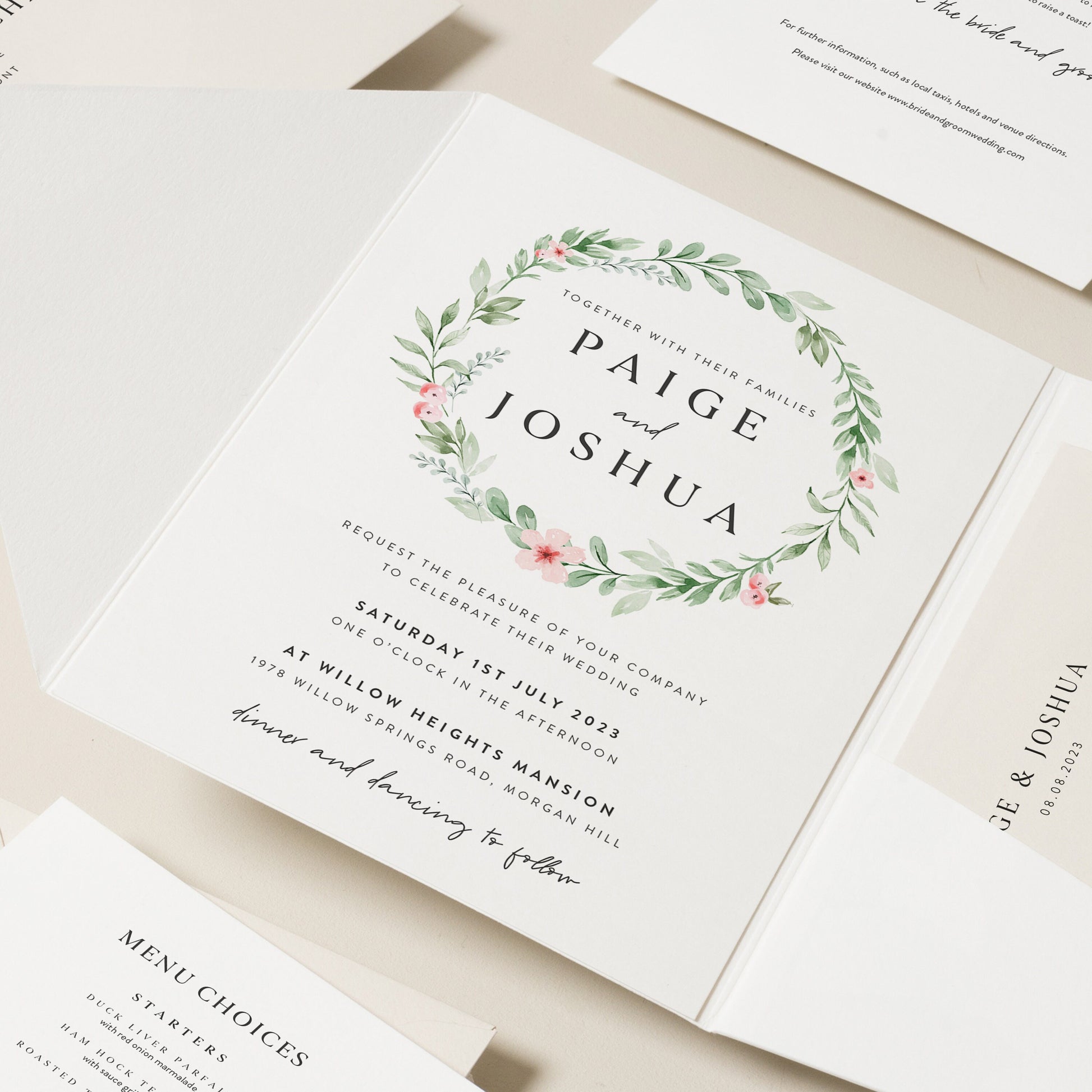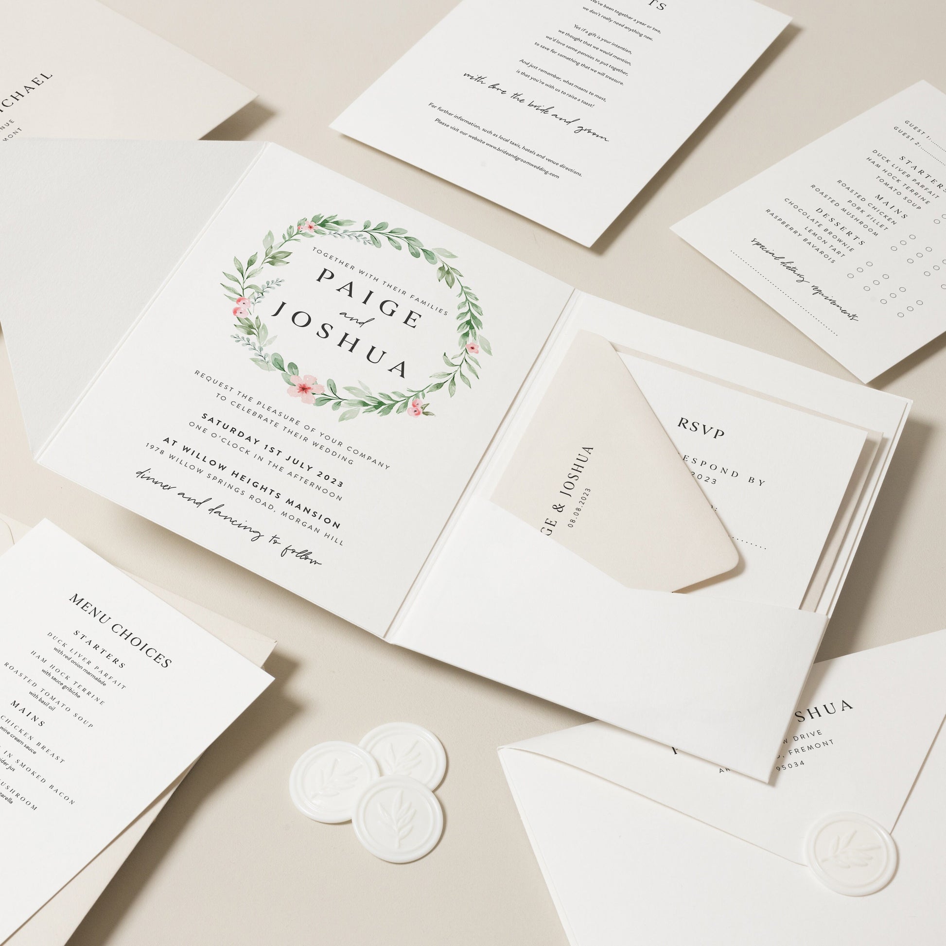 Ready to make a statement? Let's create your dream wedding invite! Our unique quote link for this design is quote.link/paige-pocketfold, all you need to do is pop it into your URL and it will offer you all the options to add to make it personal.