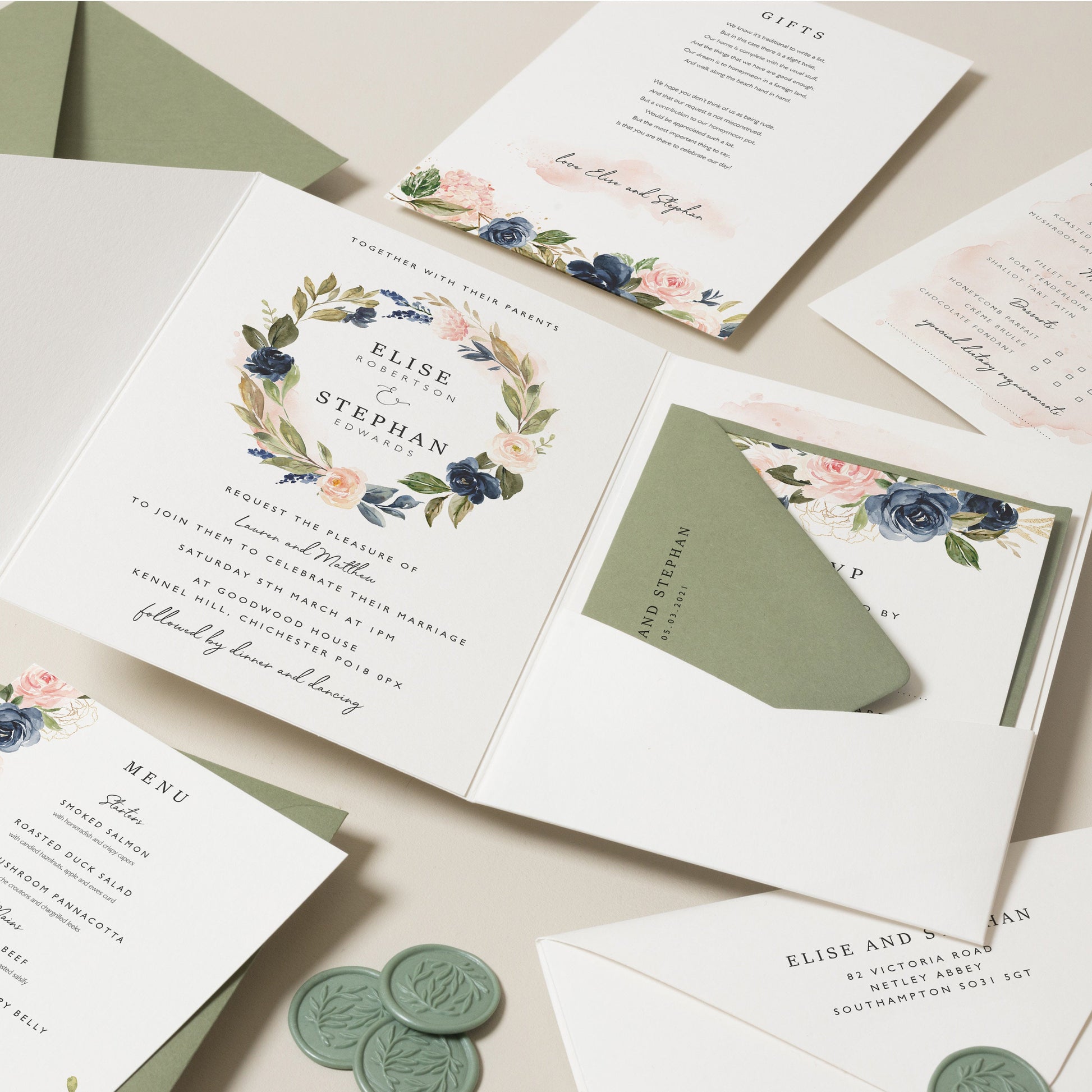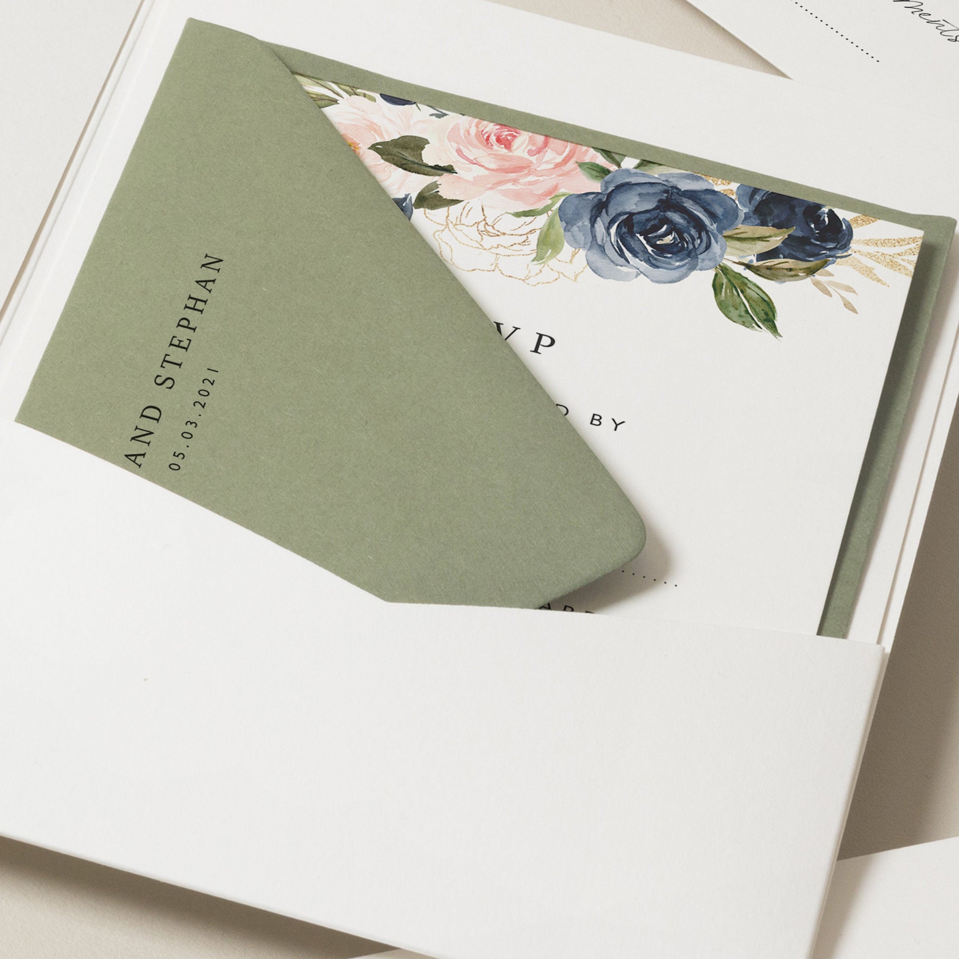 Ready to make a statement? Let's create your dream wedding invite! Our unique quote link for this design is quote.link/elise-pocketfold, all you need to do is pop it into your URL and it will offer you all the options to add to make it personal.