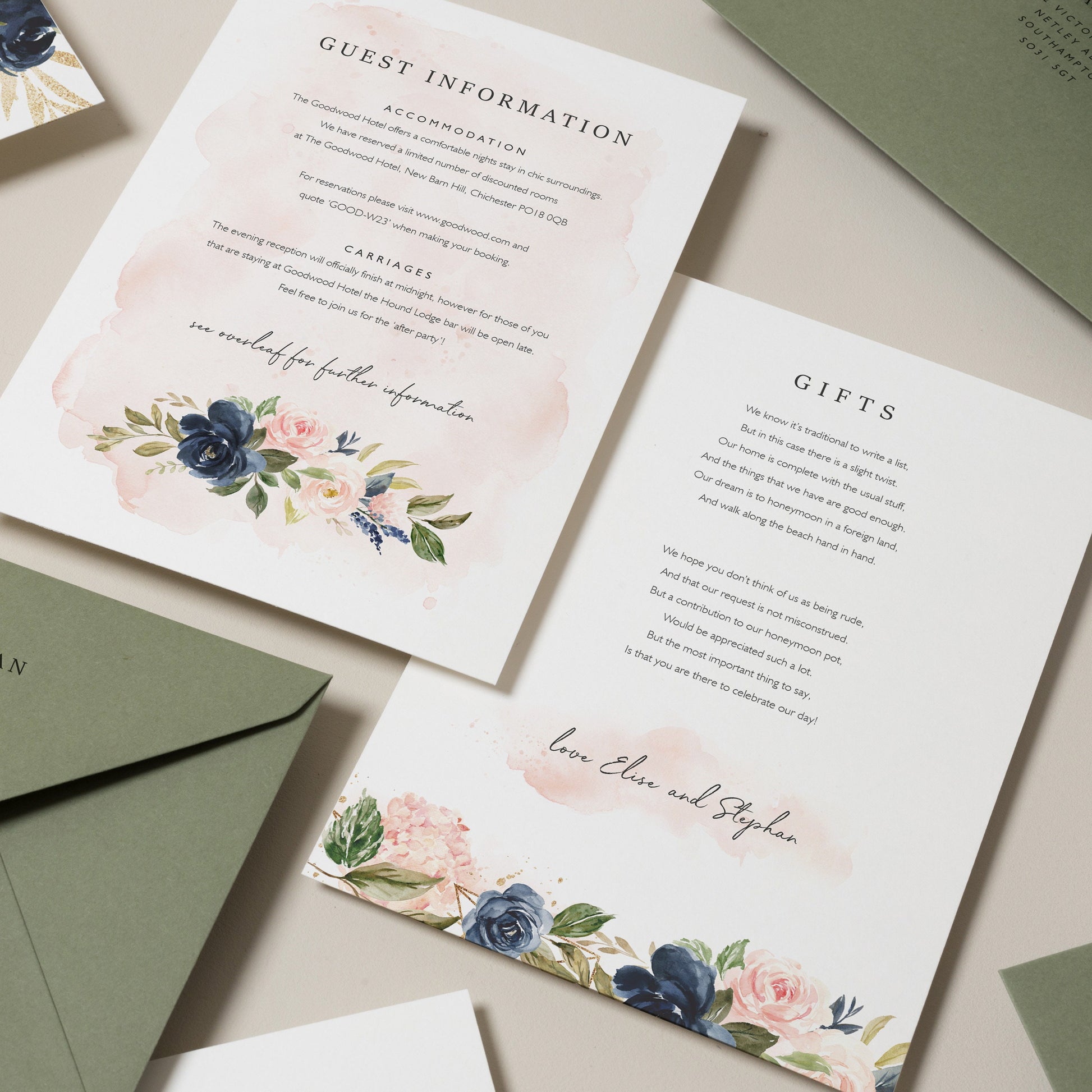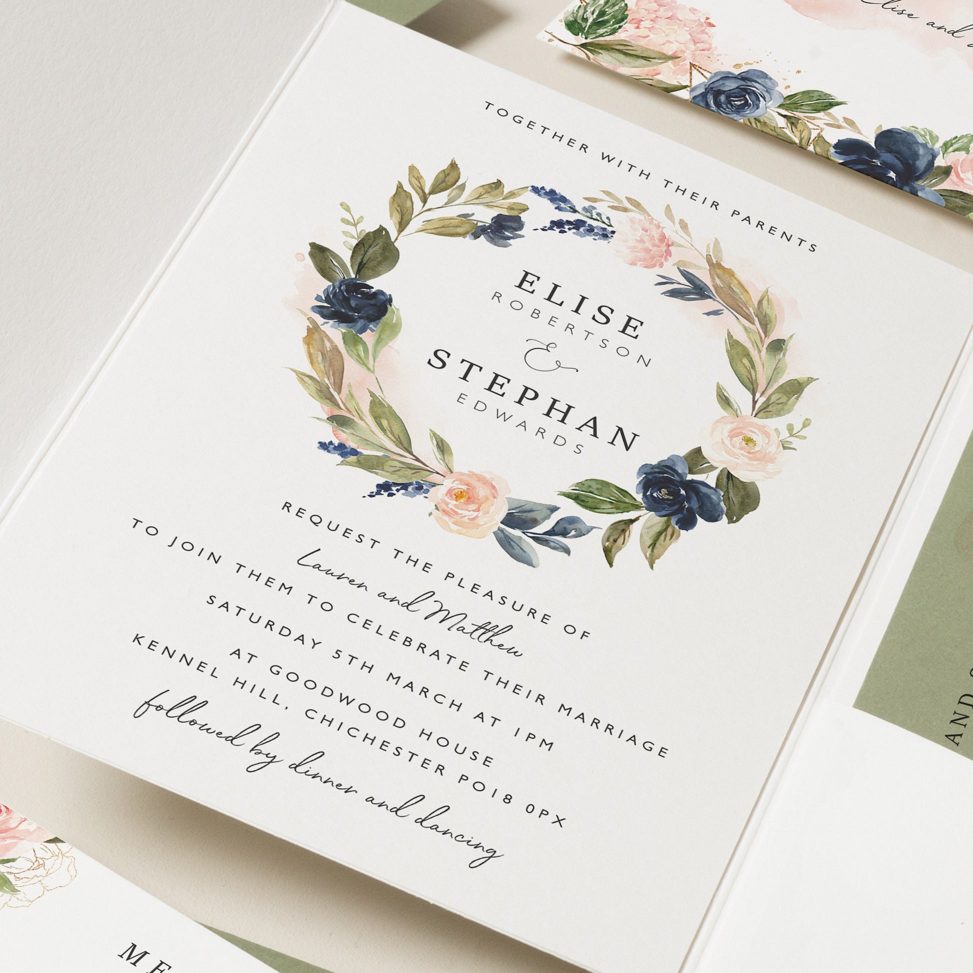 Blush Wedding Invitation Set with Envelopes 'Elise'