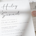 Ready to make a statement? Let's create your dream wedding invite! Our unique quote link for this design is quote.link/hailey-postcard, all you need to do is pop it into your URL and it will offer you all the options to add to make it personal.