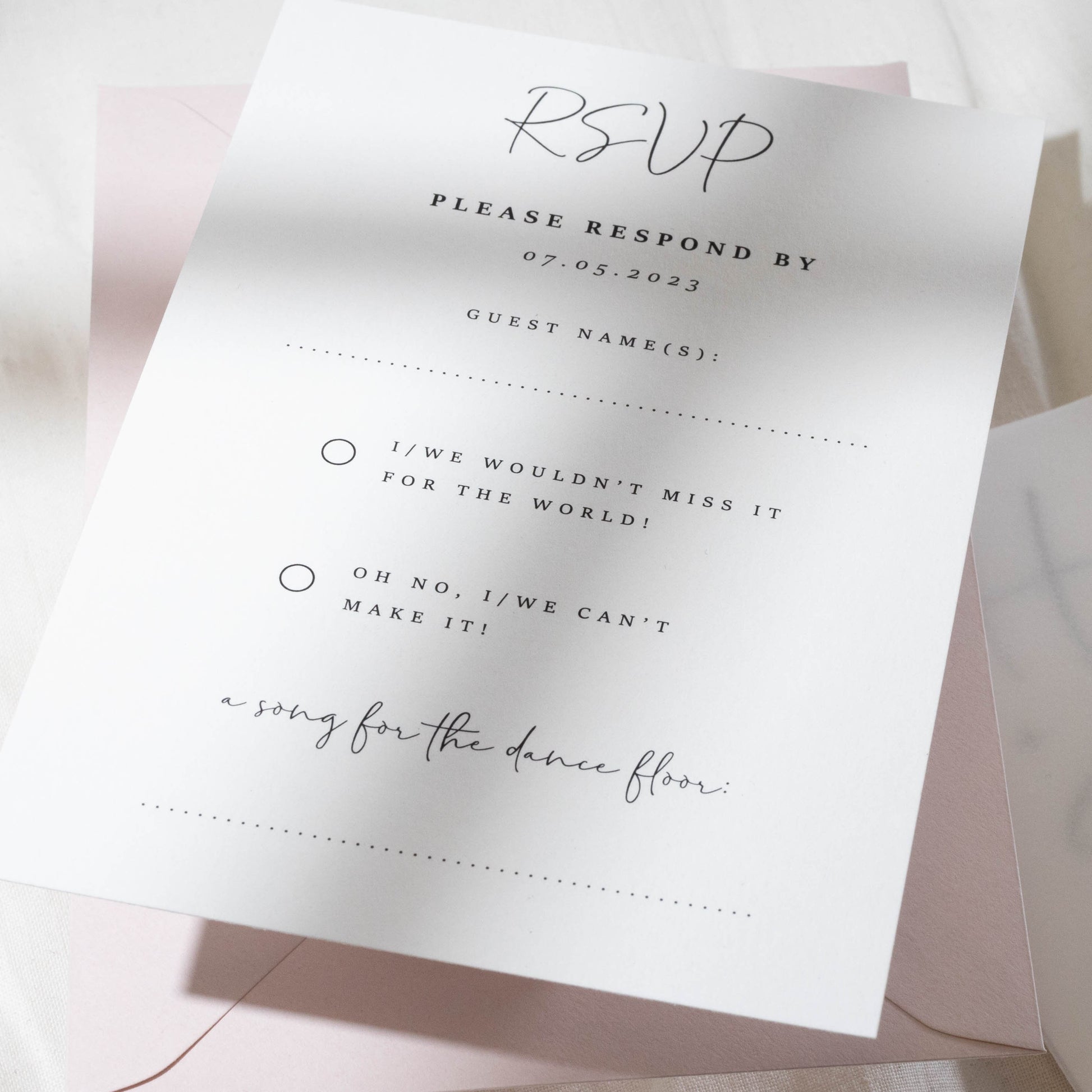 ENVELOPE ADDRESSING: Print your guest addresses on each envelope or include your return address on the reverse.