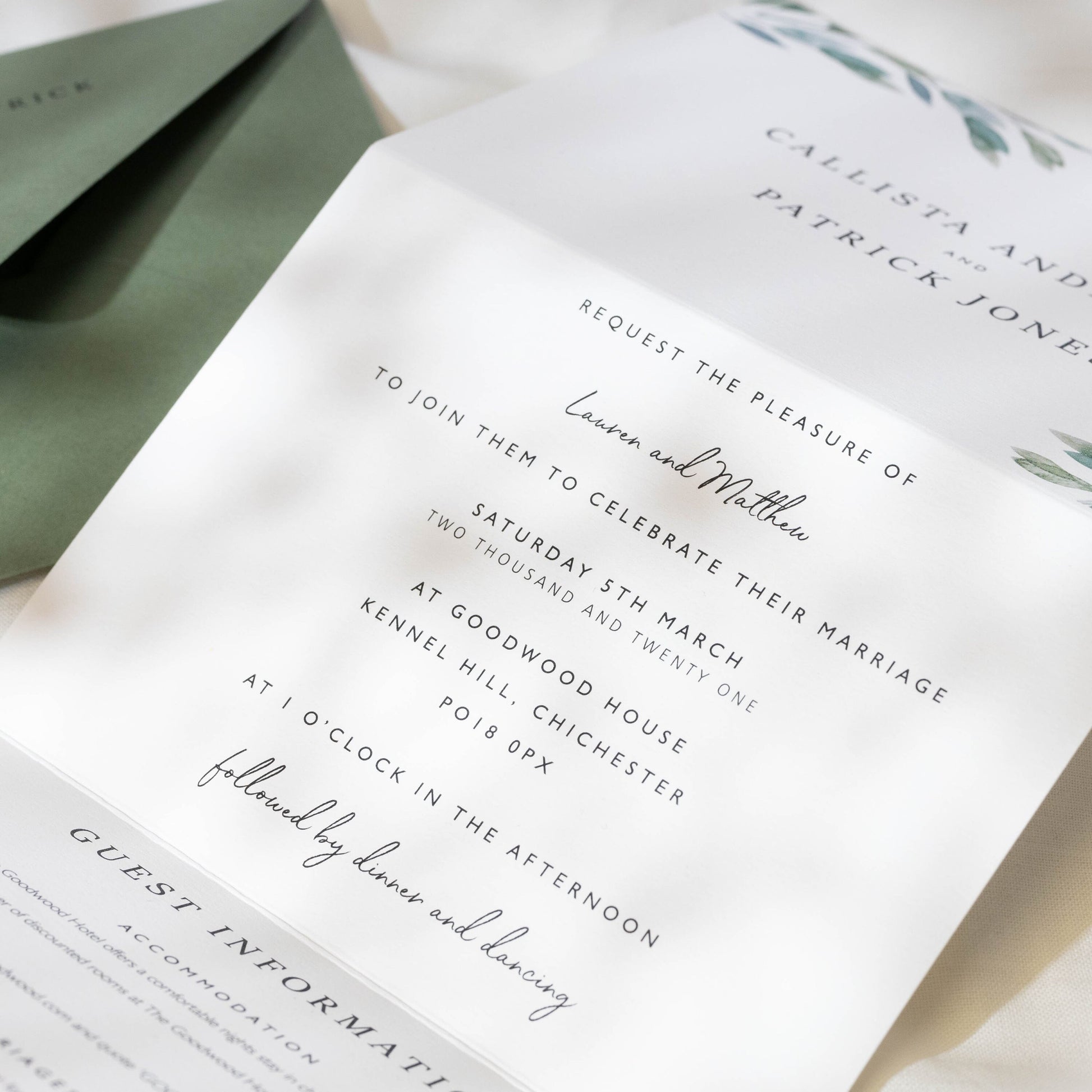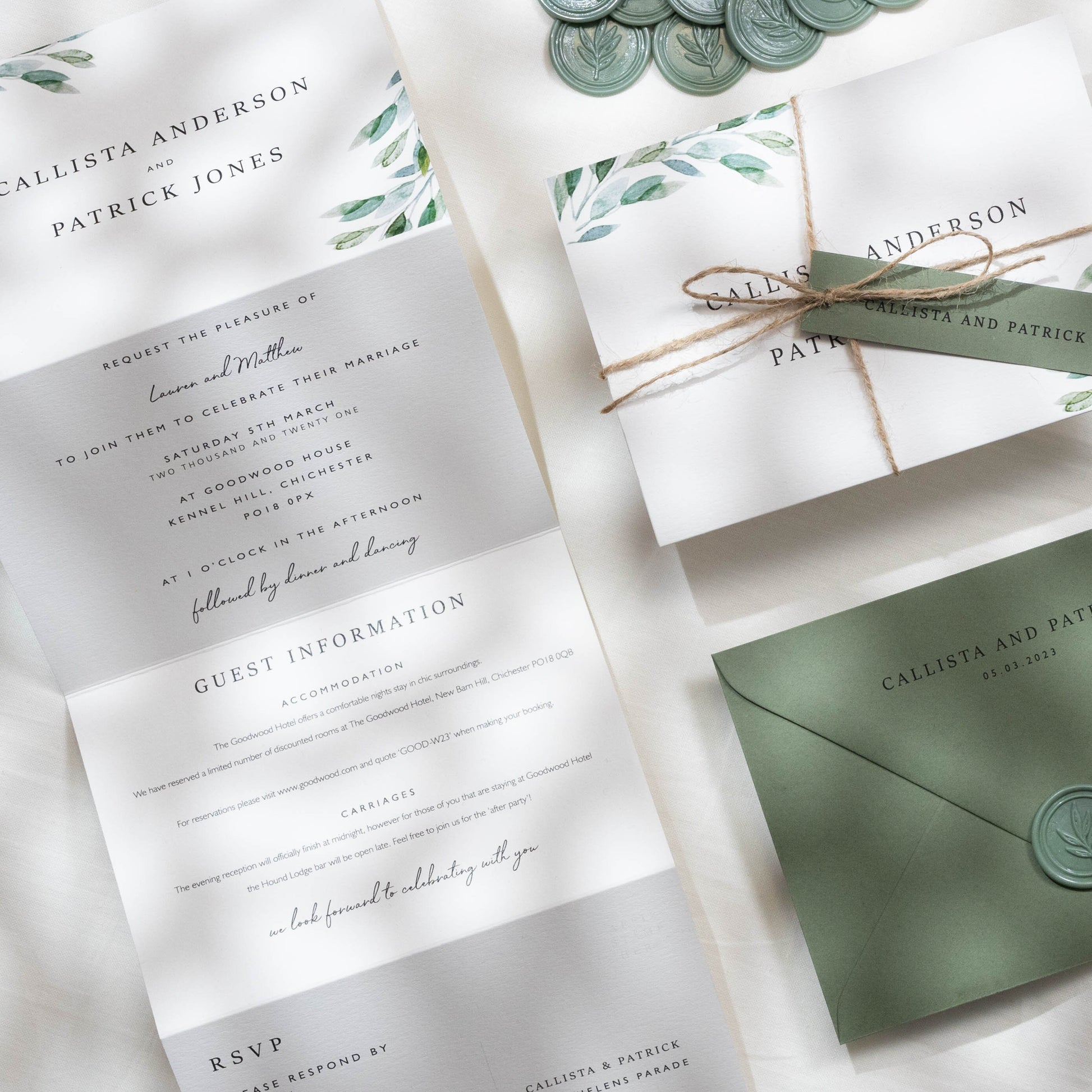 Botanical Greenery Wedding Invitation Concertina with Tags 'Callista'