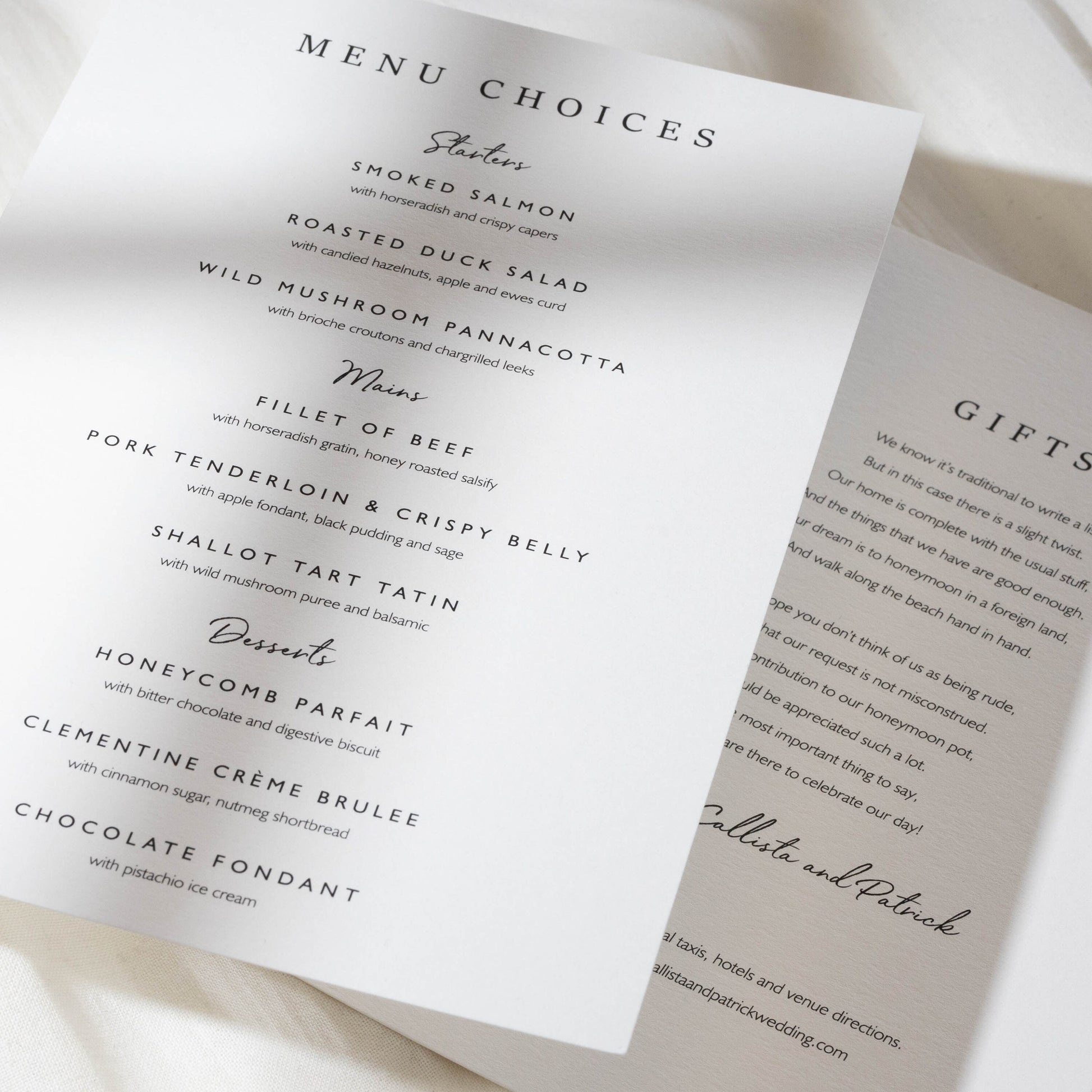 INFO CARDS: Useful for additional info such as taxi numbers, hotels, gift lists, poem's and more.
