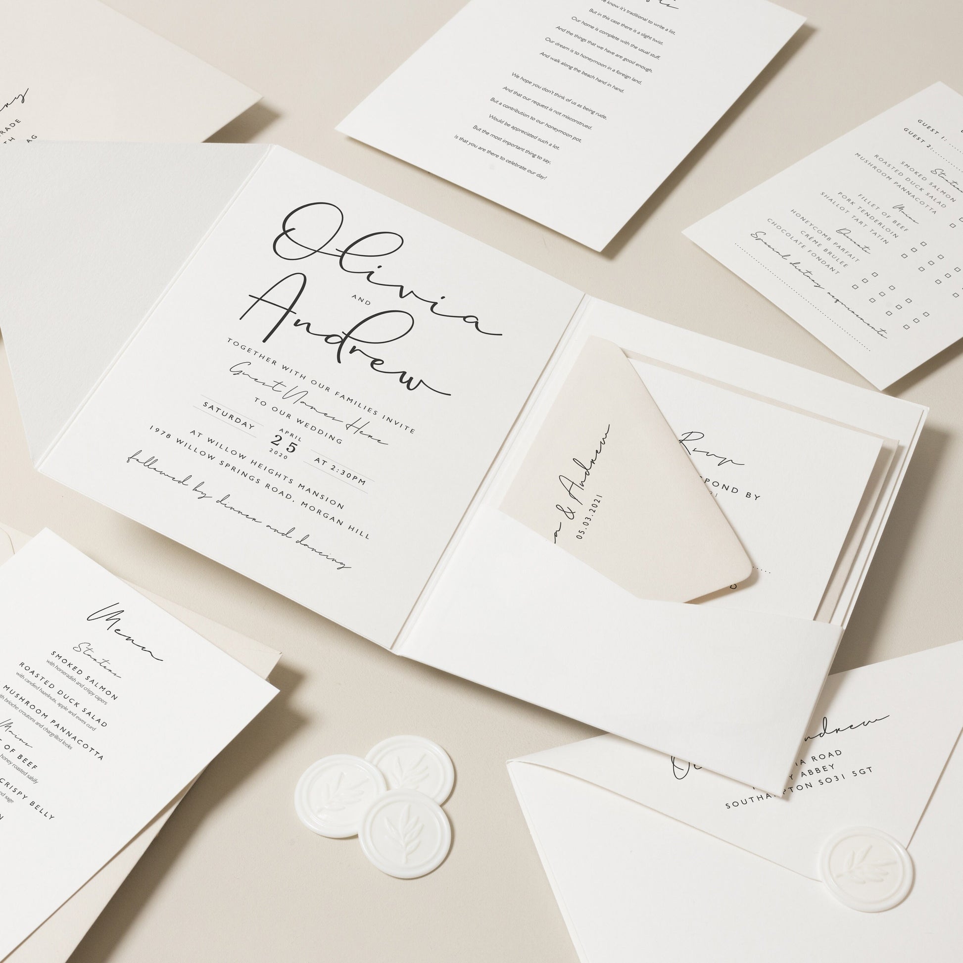 Calligraphy Pocketfold Wedding Invitation Set 'Olivia'