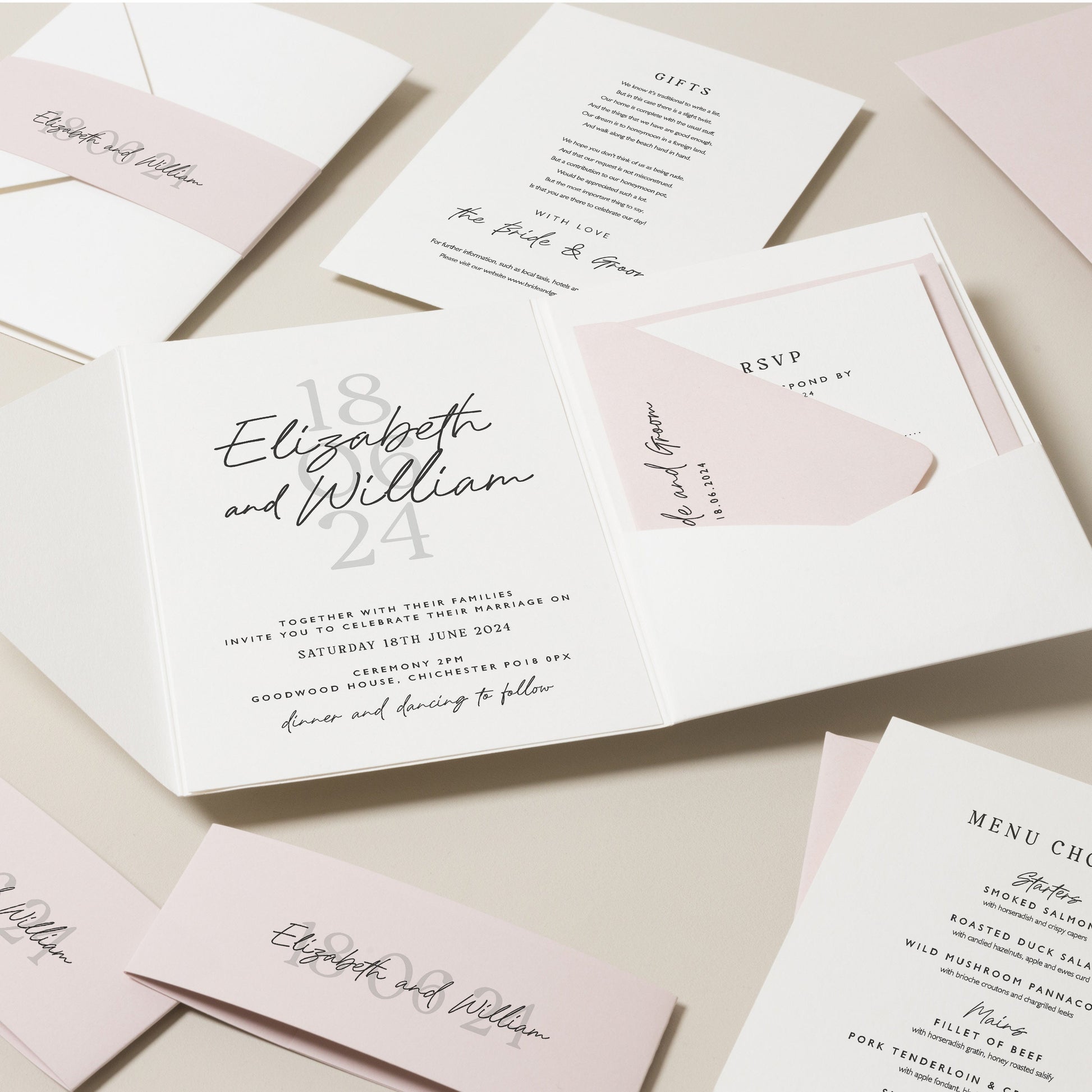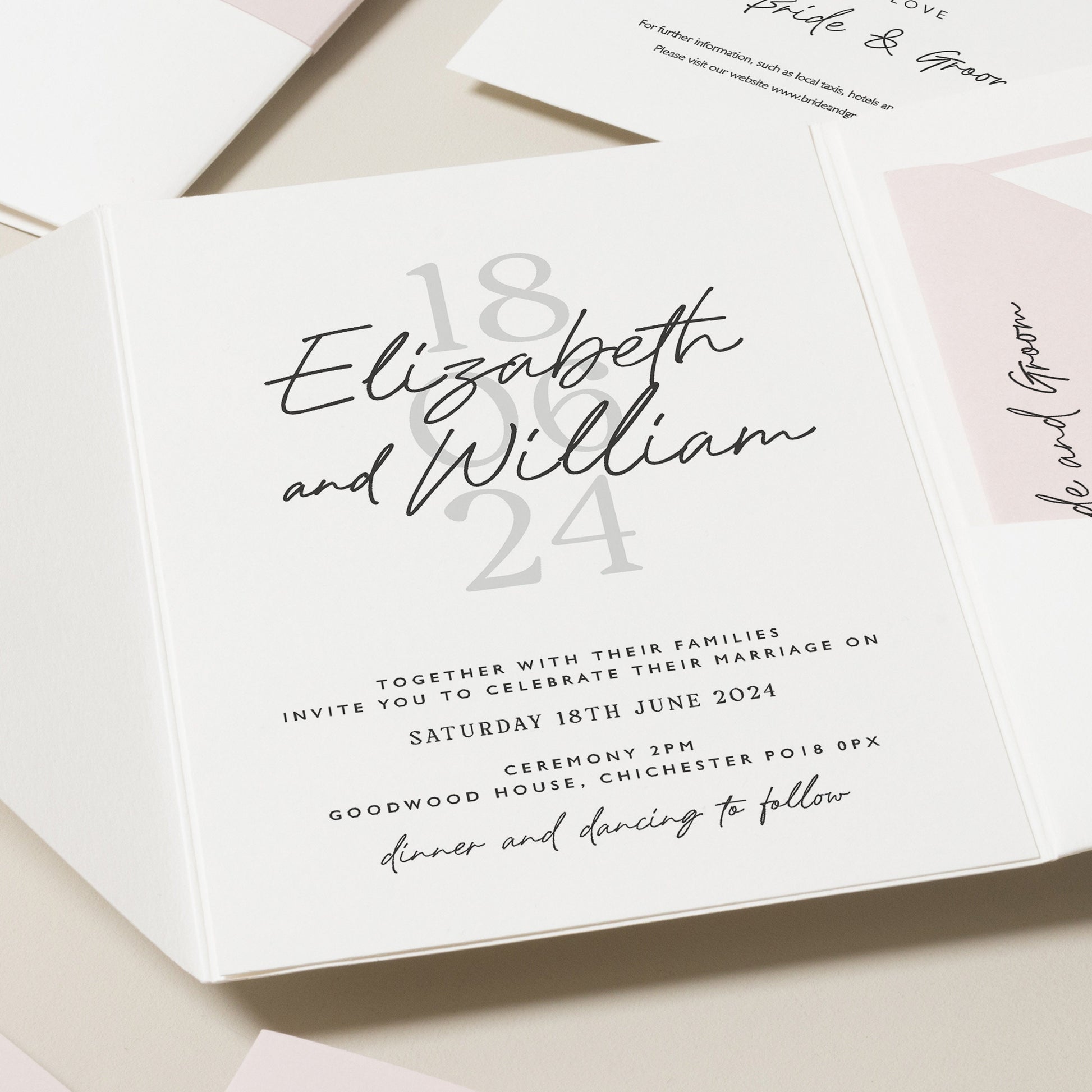 Calligraphy Pocketfold Wedding Invite Set 'Elizabeth'