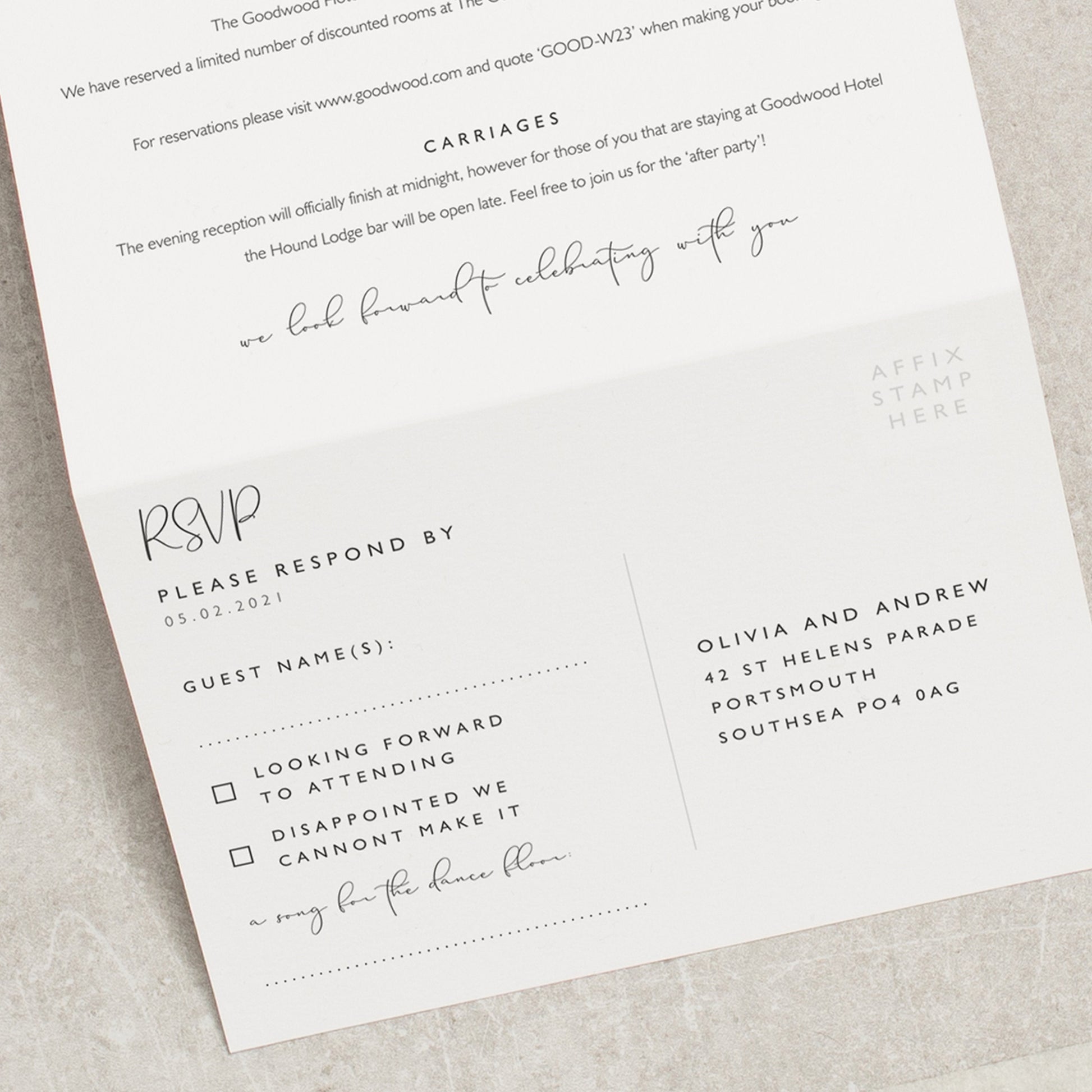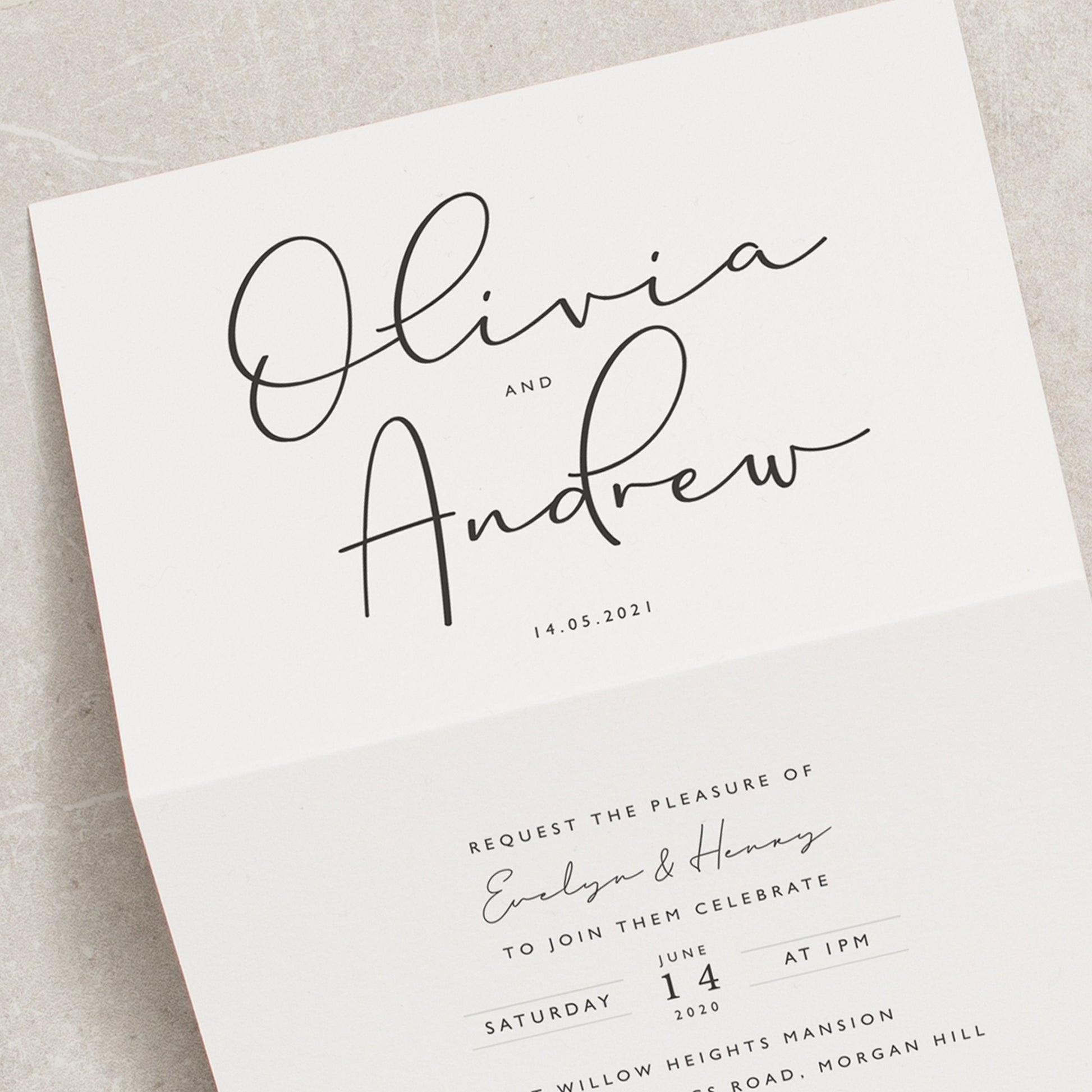 Ready to make a statement? Let's create your dream wedding invite! Our unique quote link for this design is quote.link/olivia-concertina, all you need to do is pop it into your URL and it will offer you all the options to add to make it personal.