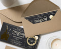 • Each voucher card measures 210x99mm, and is printed on heavyweight premium cardstock and finished with real gold foil detailing for a luxurious touch.