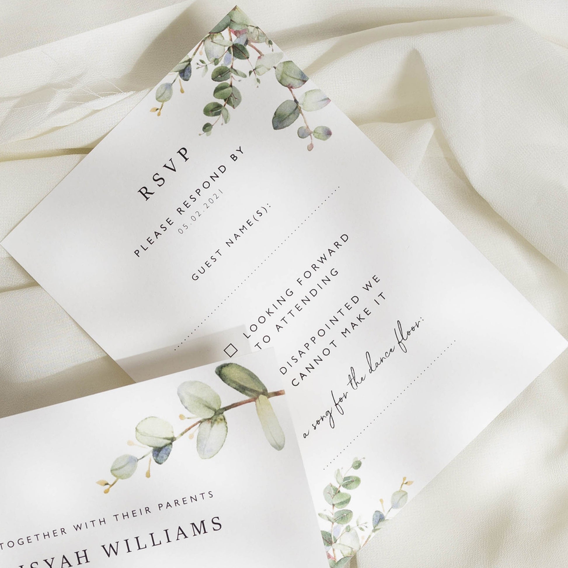 RSVPS: Choose one sided for a simple yes/no response or both sides for menu choices.