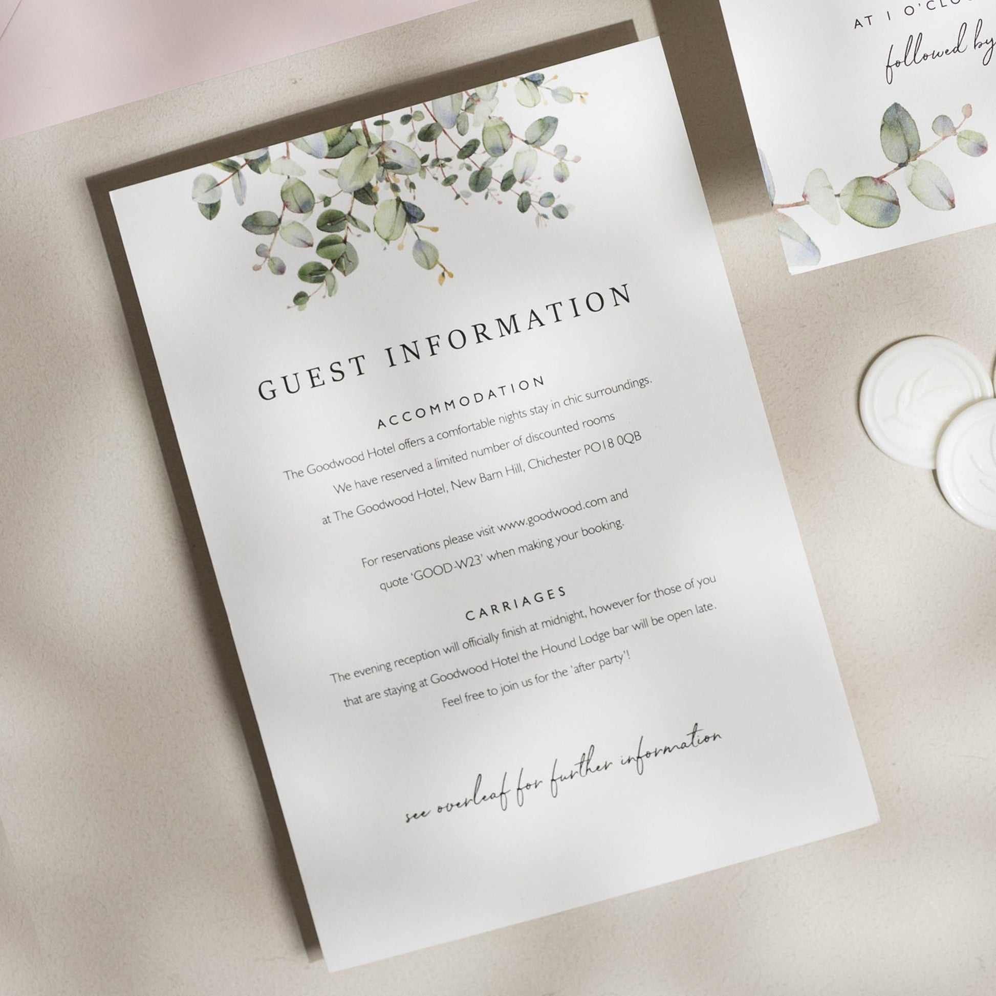 INFO CARDS: Useful for additional info such as taxi numbers, hotels, gift lists, poem's and more.