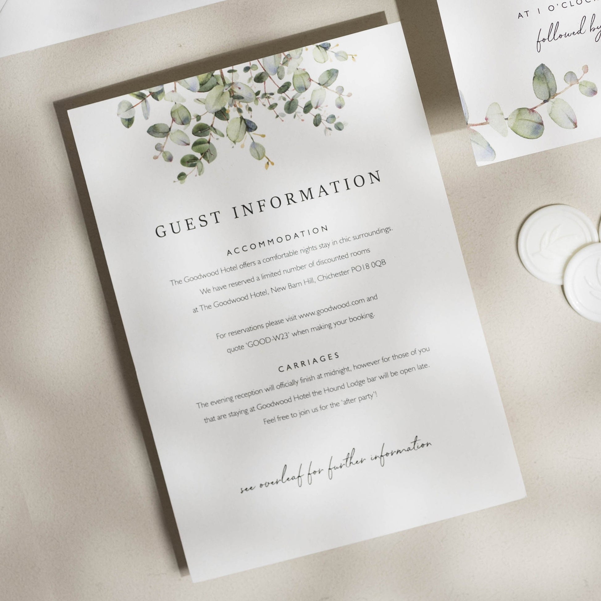 INFO CARDS: Useful for additional info such as taxi numbers, hotels, gift lists, poem's and more.