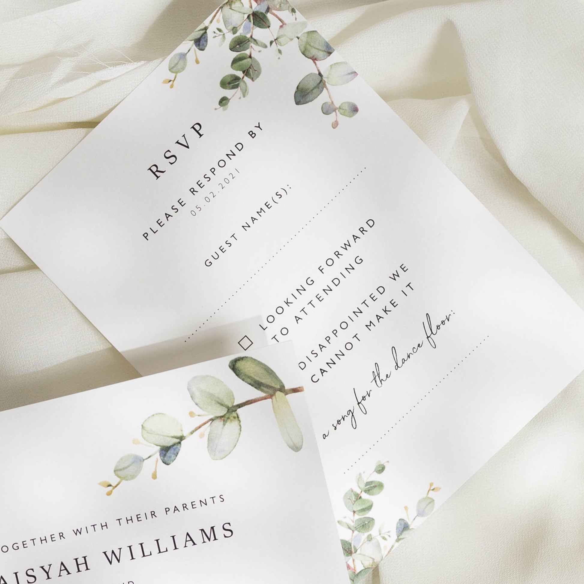 RSVPS: Choose one sided for a simple yes/no response or both sides for menu choices.