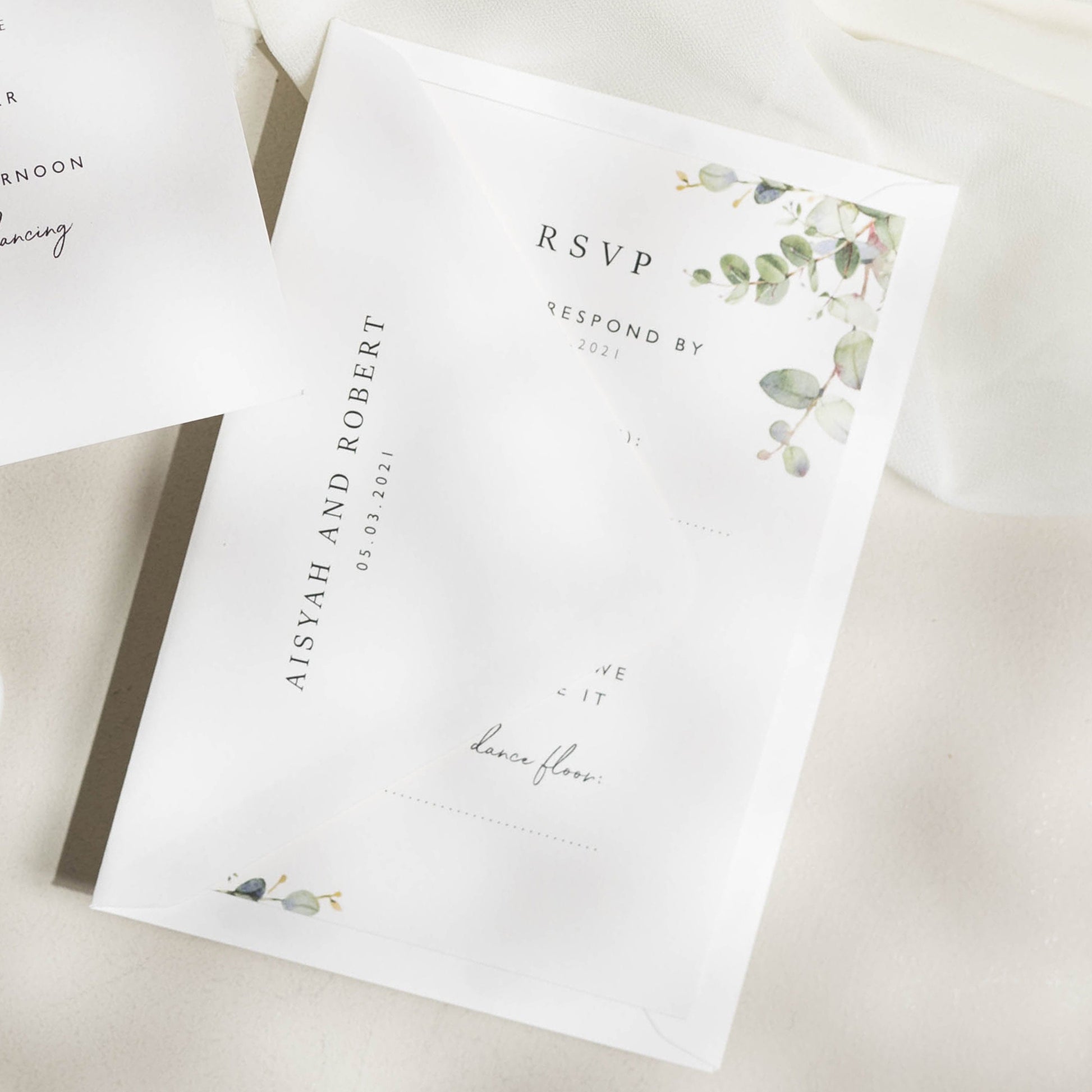 VELLUM JACKETS: Our translucent vellum jackets wrap around your invitations to add interest, texture and intrigue.