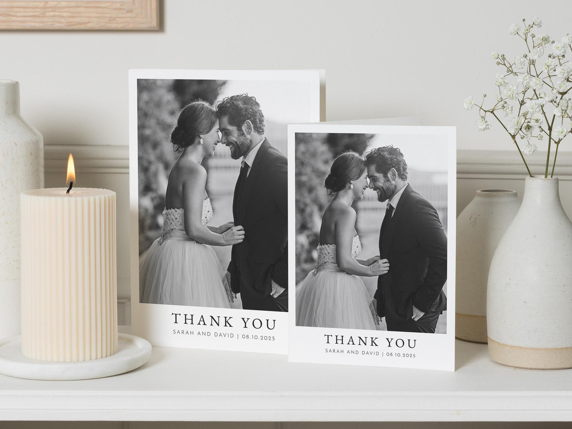 Our wedding thank you cards are fully personalised – featuring your chosen photo (or photos!) and wording to match your style. Whether you prefer something modern and minimal or a design with a touch of elegance, we’ll help you create a card that feels uniquely you.