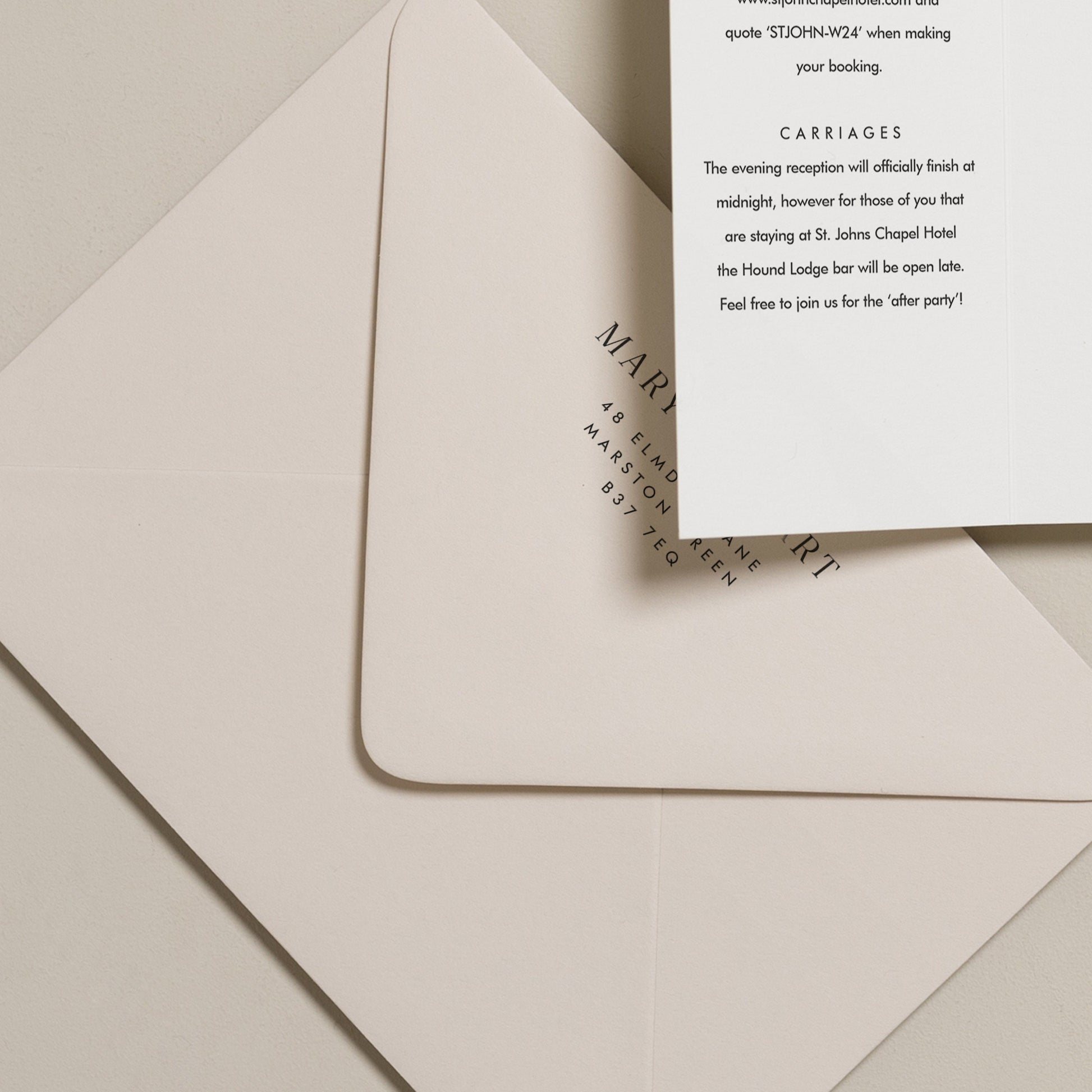 ENVELOPE ADDRESSING: Print your guest addresses on each envelope or include your return address on the reverse.