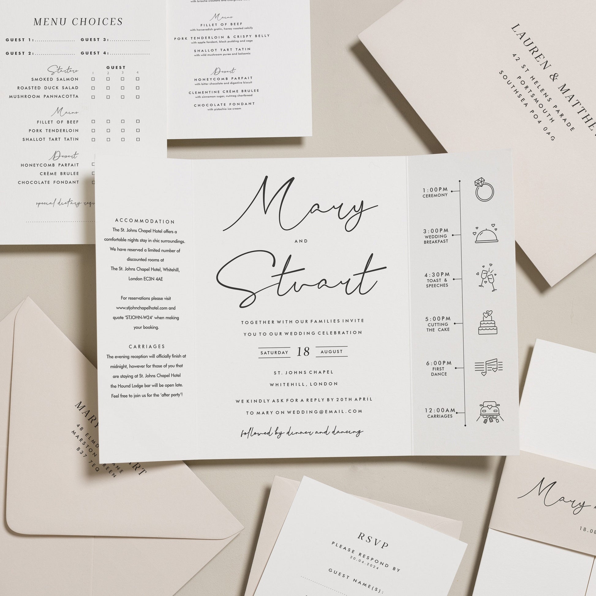 Ready to make a statement? Let's create your dream wedding invite! Our unique quote link for this design is quote.link/mary-gatefold, all you need to do is pop it into your URL and it will offer you all the options to add to make it personal.